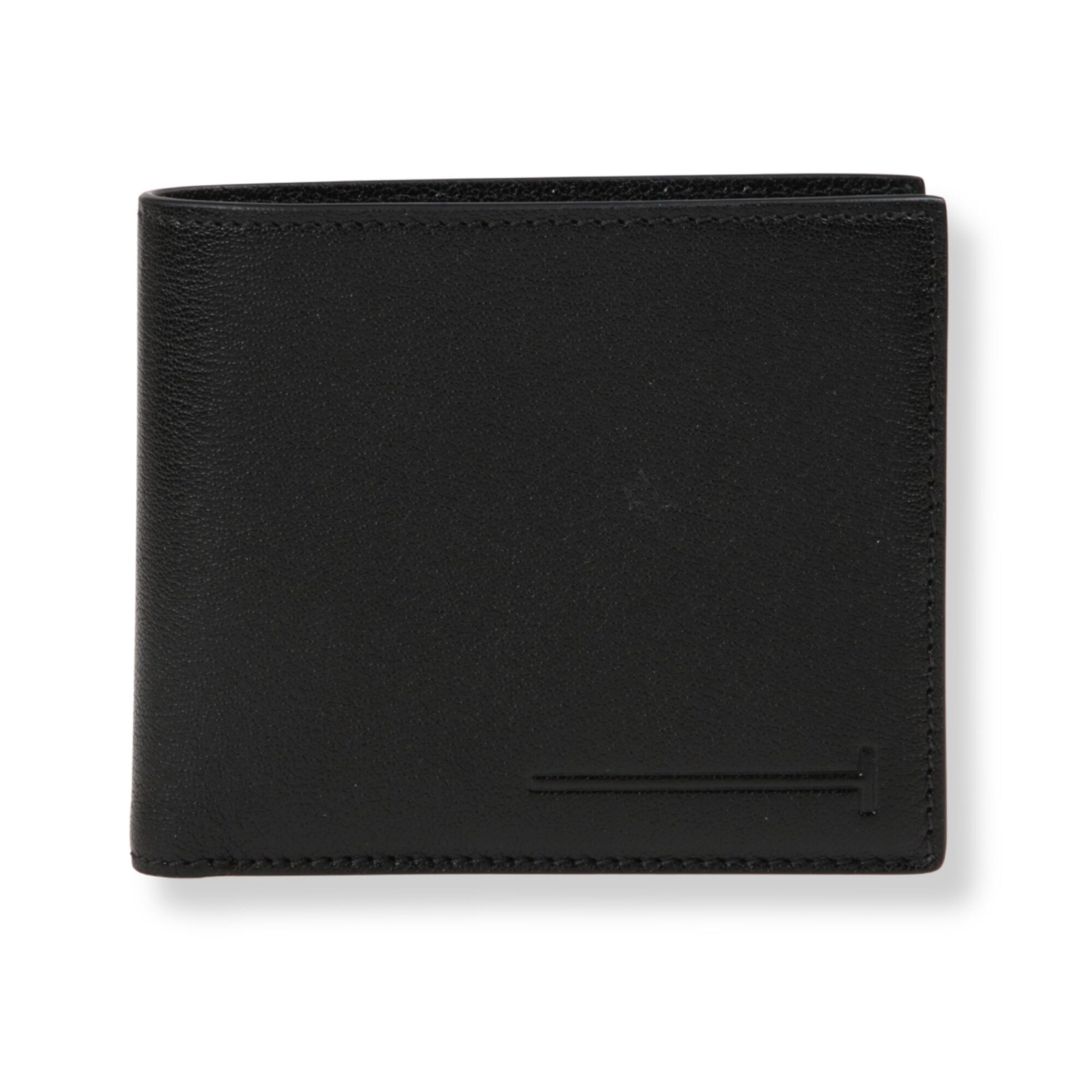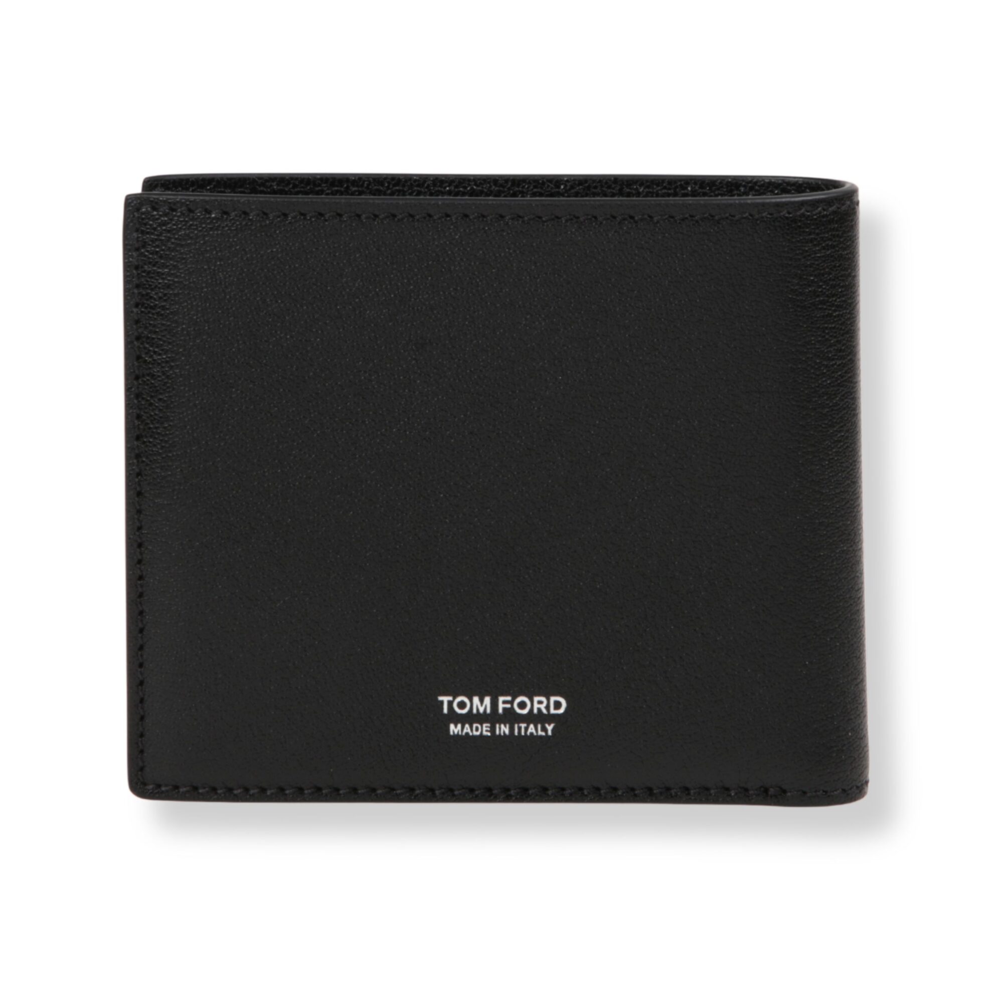 Portafoglio Tom Ford. Bi-fold in pelle martellata, scomparti interni per carte e banconote, logo del brand sul davanti.