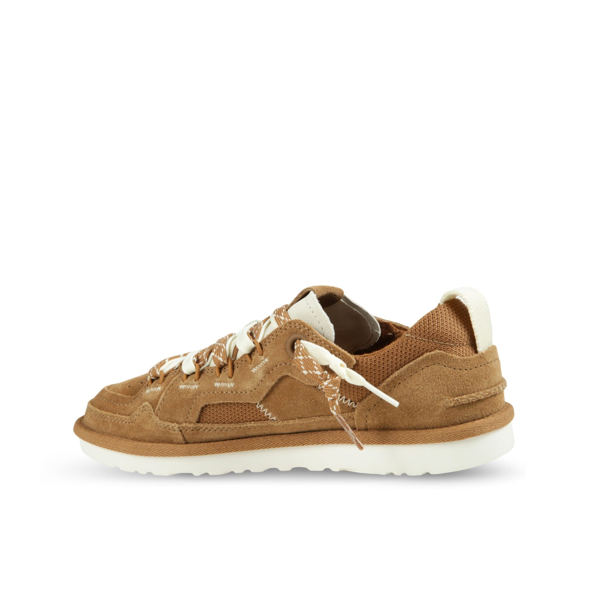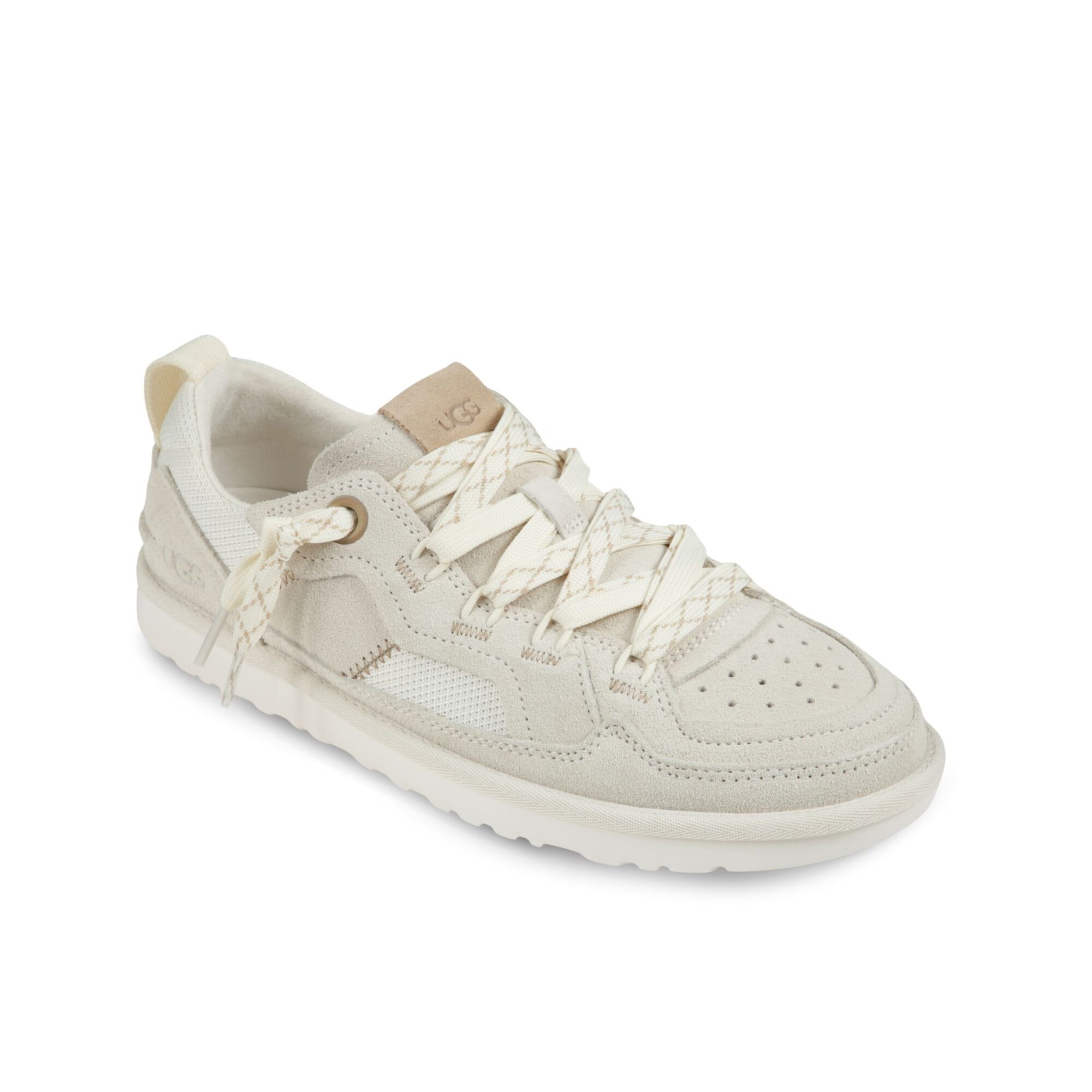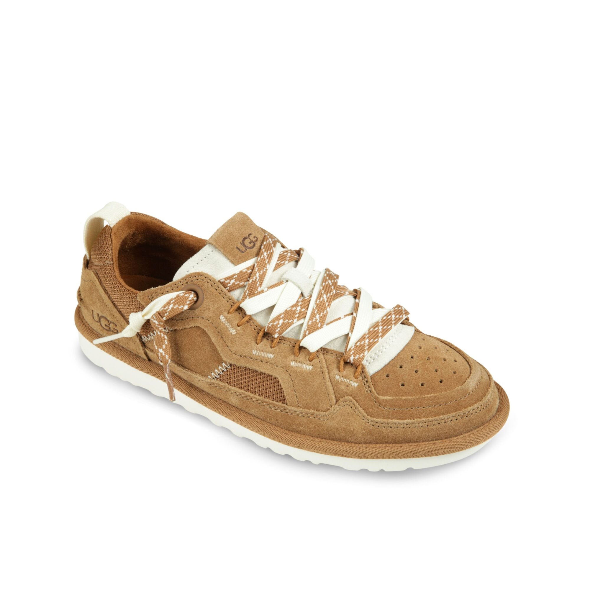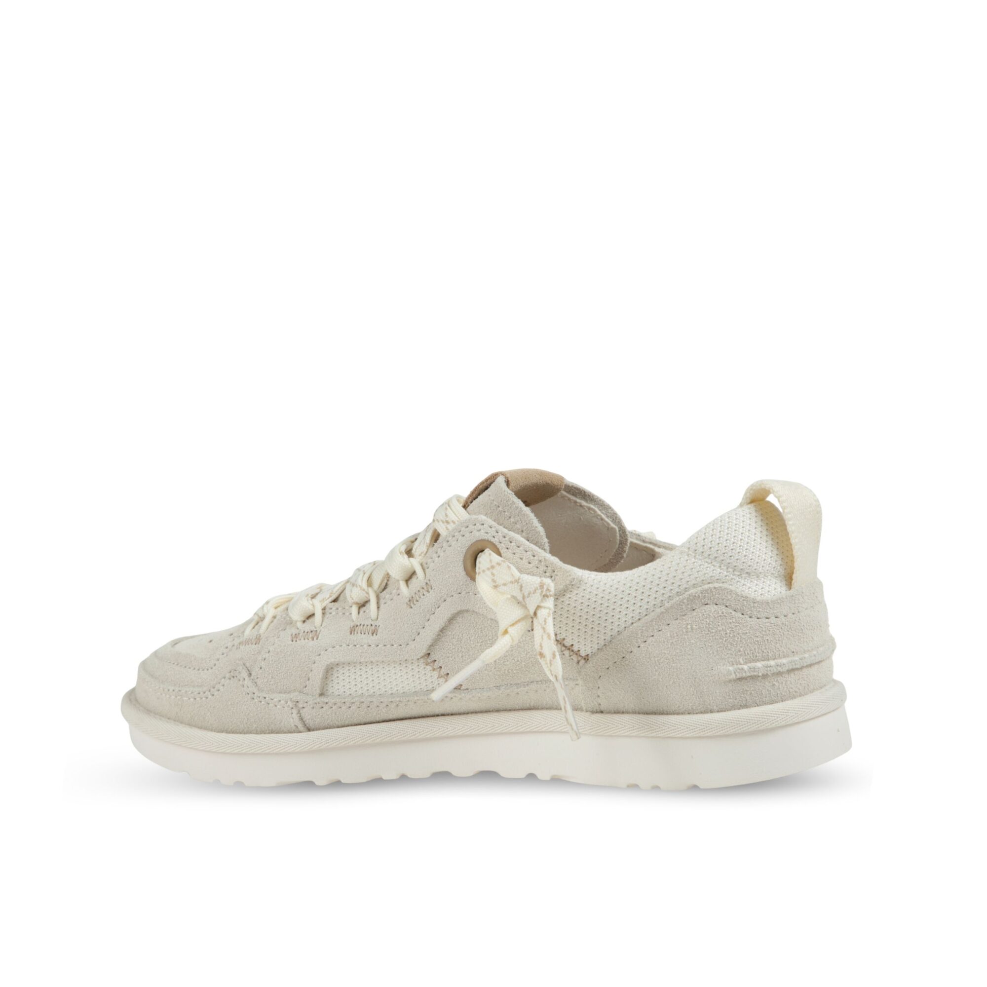 Sneakers Minimel UGG. Tomaia in pelle scamosciata e mesh traspirante, profilo basso. Chiusura con lacci piatti bicolore e suola ultraleggera in EVA.