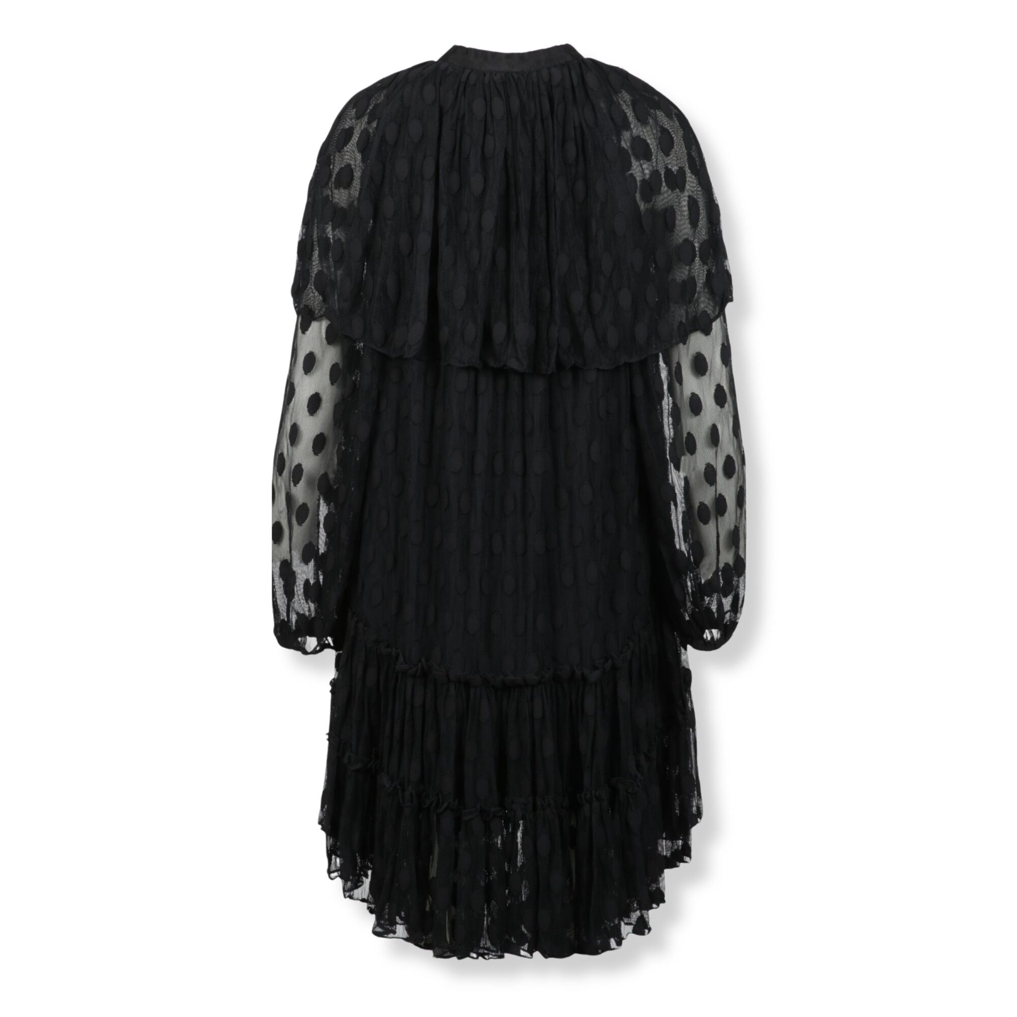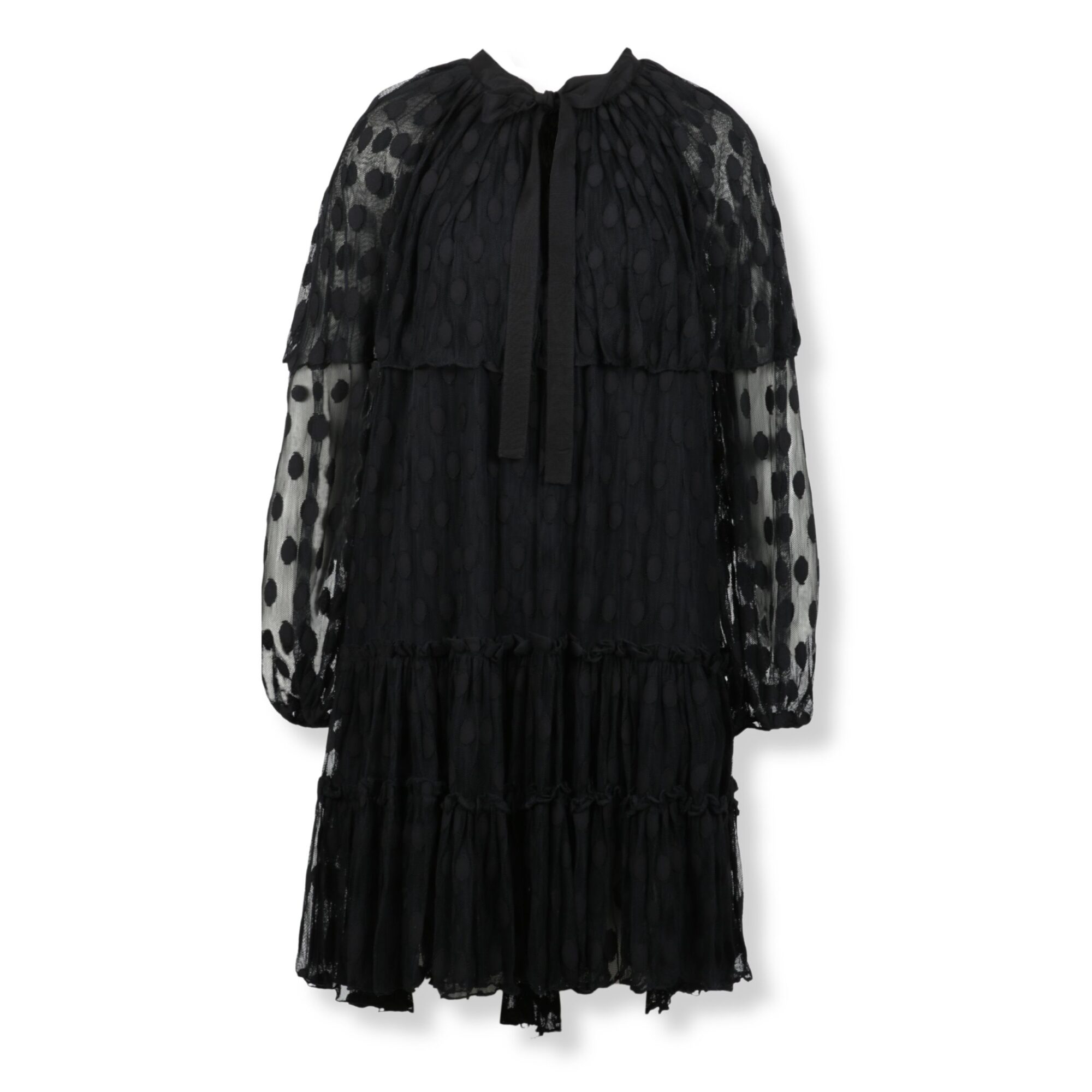 Carla Dress Ulla Johnson. Design in mesh fil coupé, semitrasparente, pieghe a ruche effetto drappeggiato su tutto il corpo. Gonna lievemente svasata e collo lavallière con fiocco.