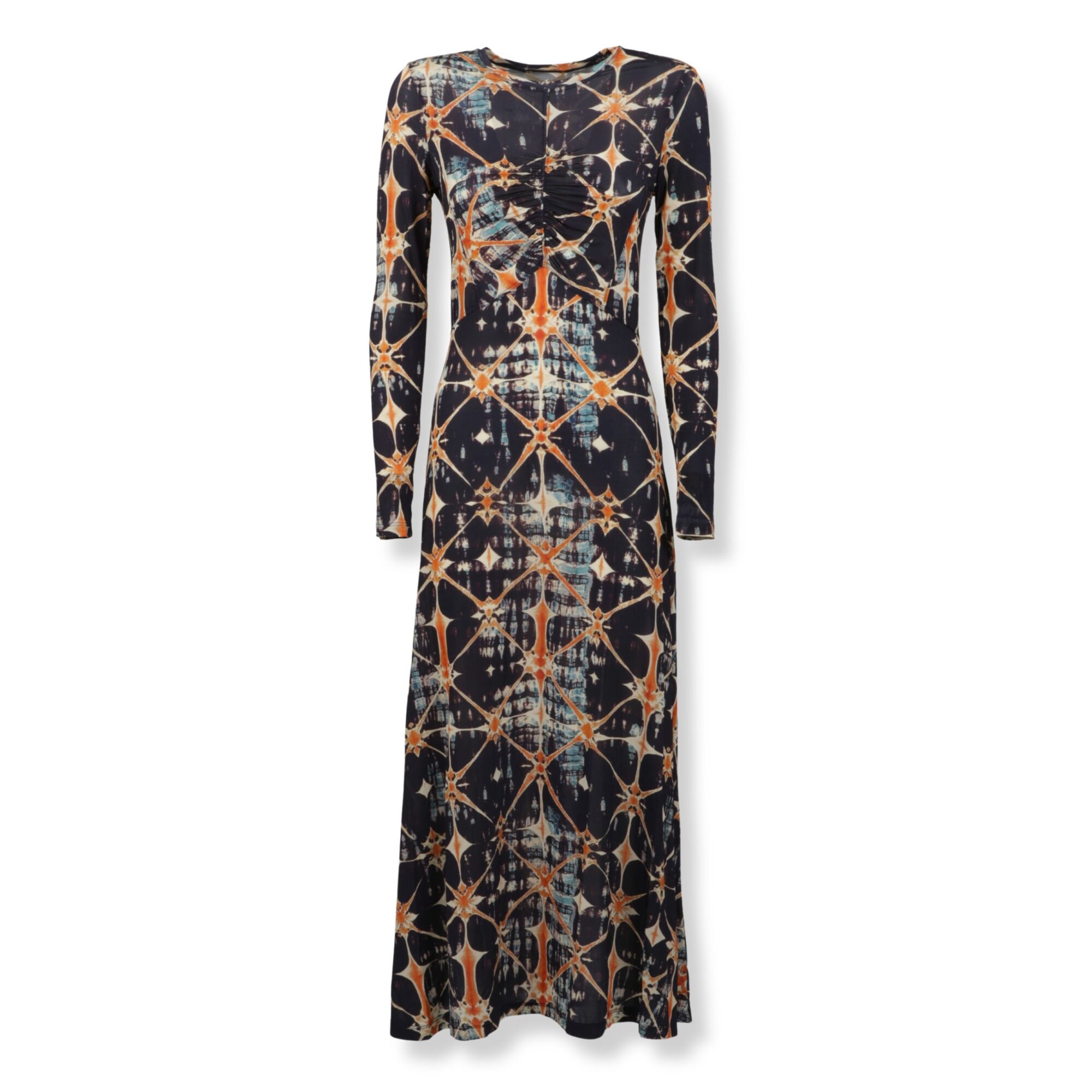 Naia Dress Ulla Johnson. Maniche lunghe, scollo rotondo, corpetto con vestibilità slim e gonna con orlo leggermente svasato, decorato con stampa iconica del brand su tutta la supericie.