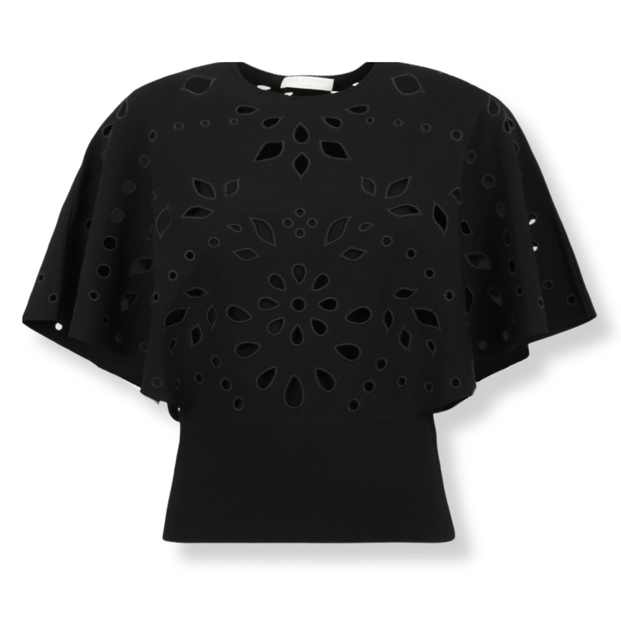 Josie Top Ulla Johnson. Scollo rotondo, maniche corte a mantella e fondo largo elasticizzato. Decorato con lavorazione eyelet traforata a motivo floreale sul carré e sulle maniche.