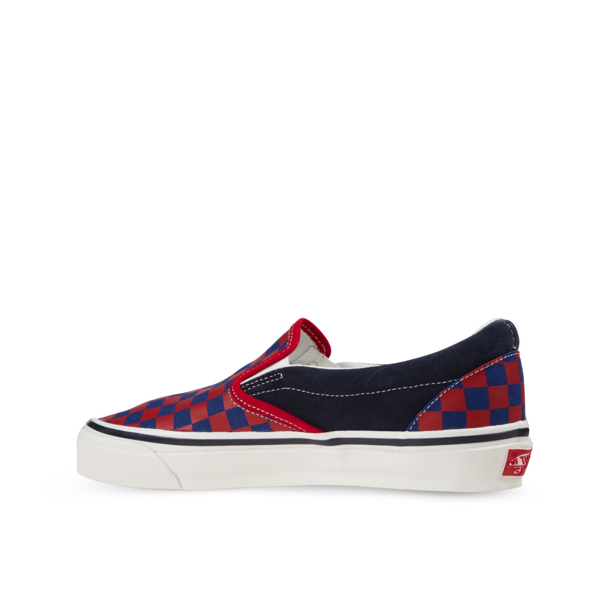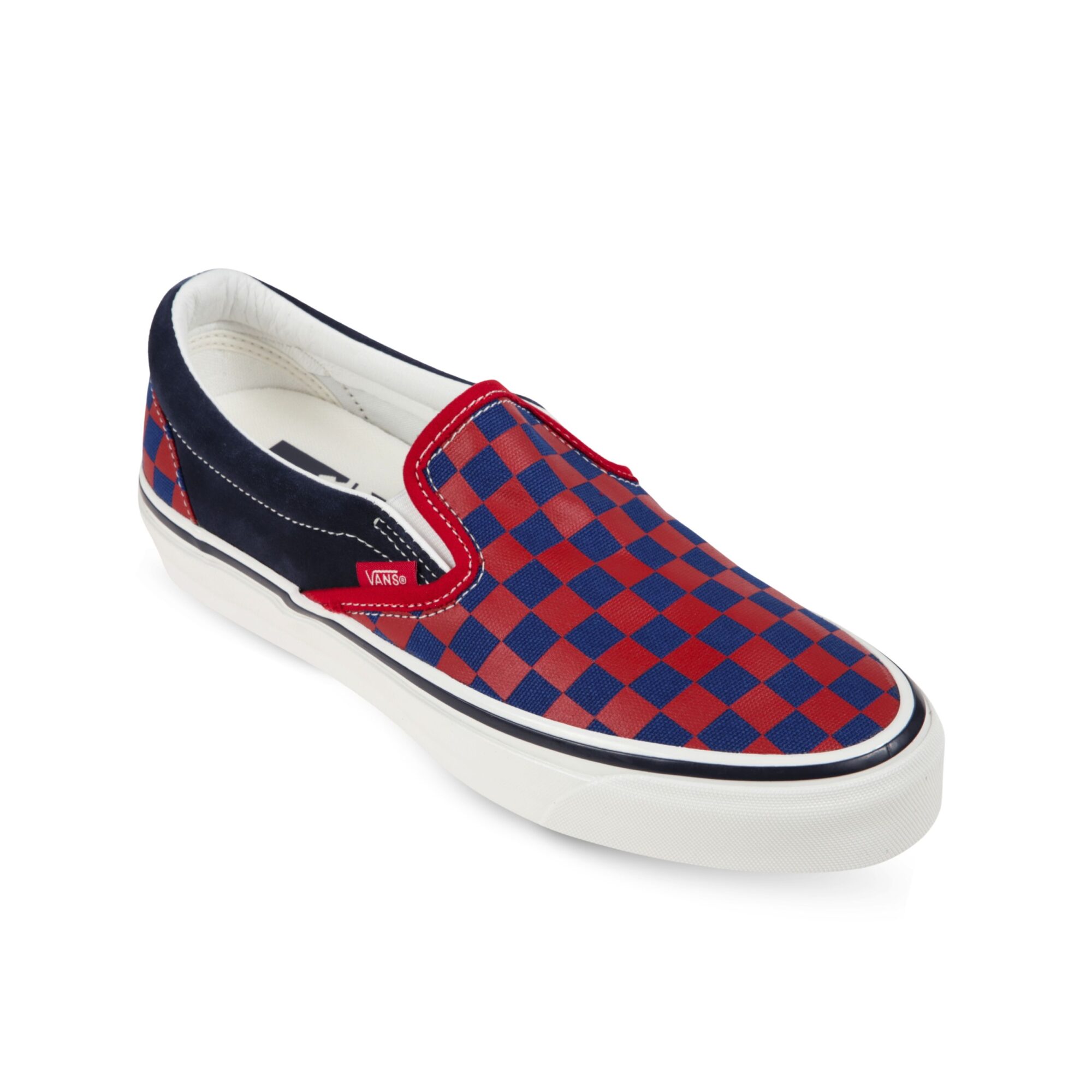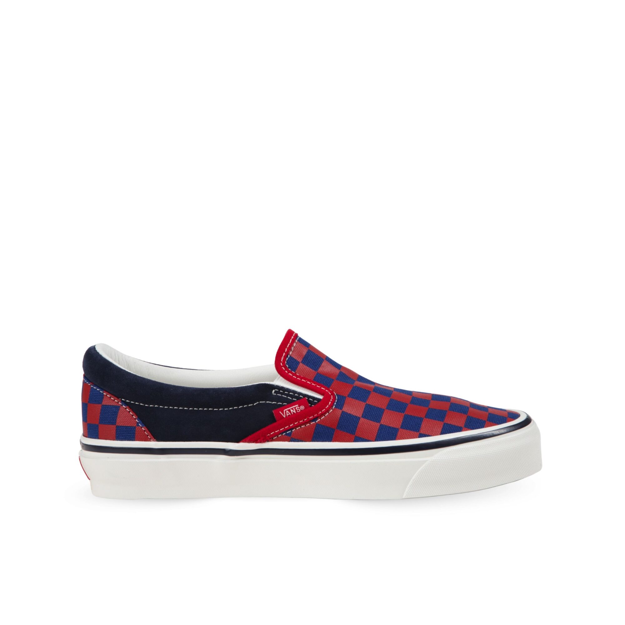 Slip-on Checkerboard Vans. Design iconico in tela, con collo imbottito ed inserti elastici laterali. Motivo a scacchiera e suola waffle in gomma.