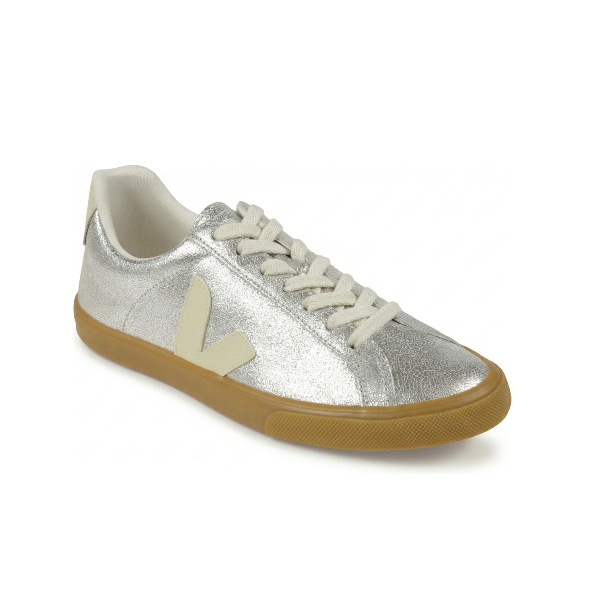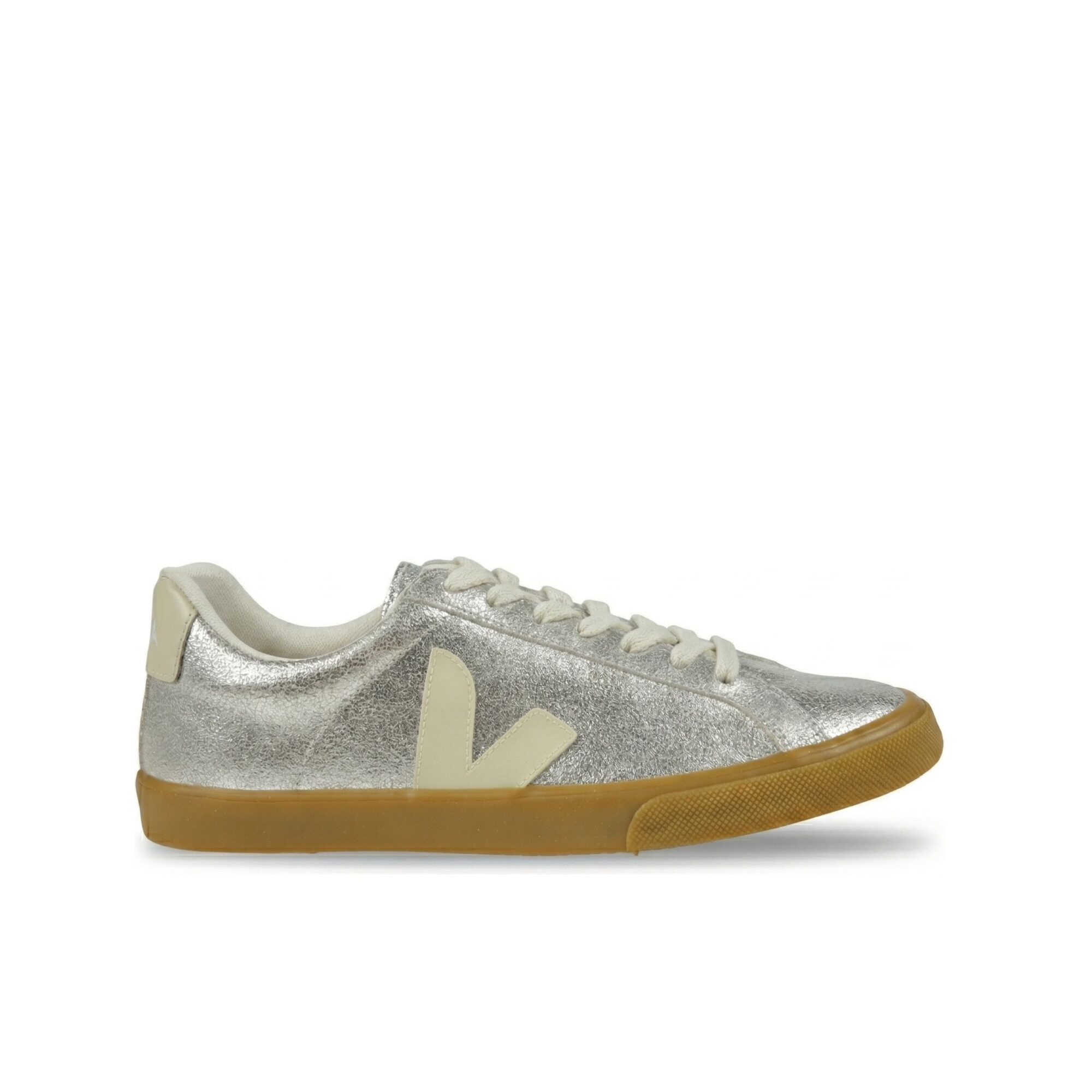Sneakers Esplar Veja. Tomaia in suede cracklé ed inserti in pelle scamosciata, suola in miscela di gomma amazzonica e silice minerale.