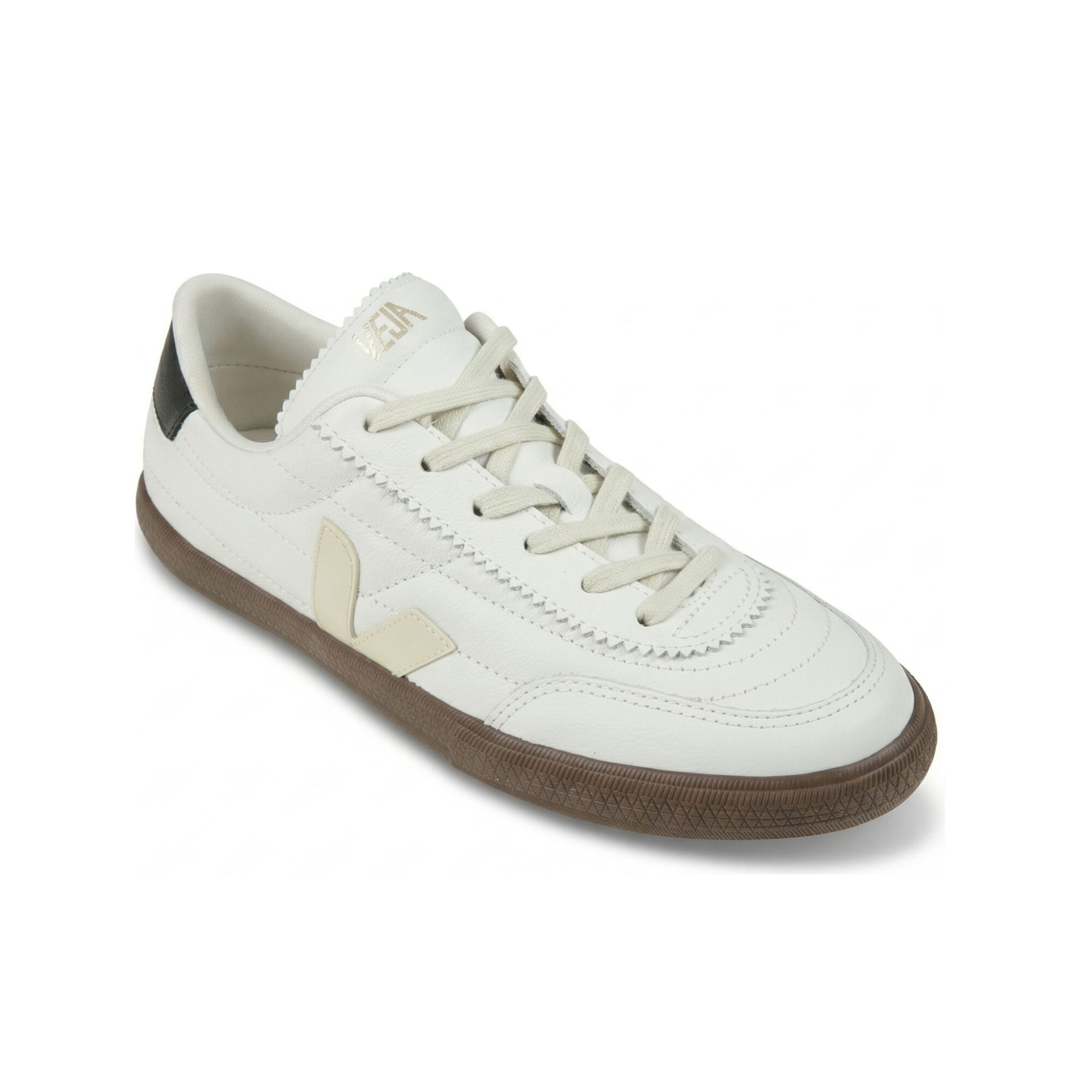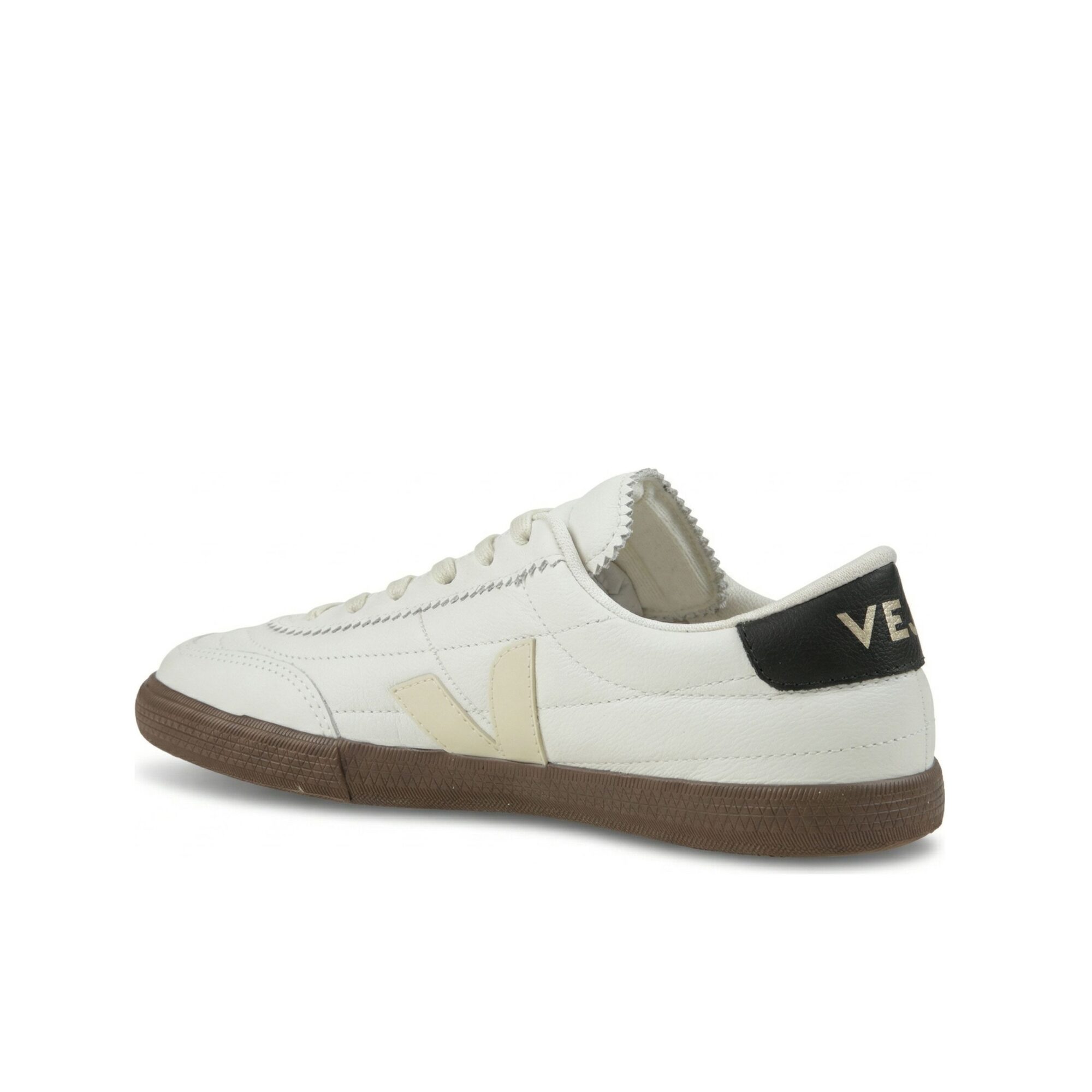 Sneakers Panenka Veja. Tomaia in pelle Organic Traced (O. T.) ed inserti in pelle liscia, suola in miscela di gomma amazzonica e silice minerale.