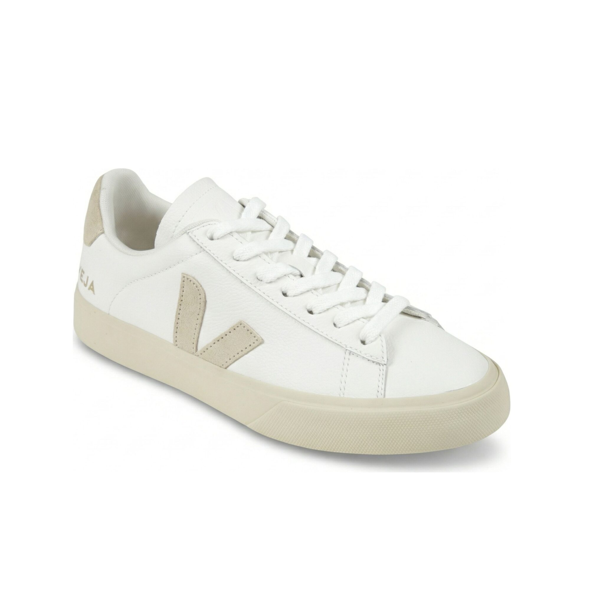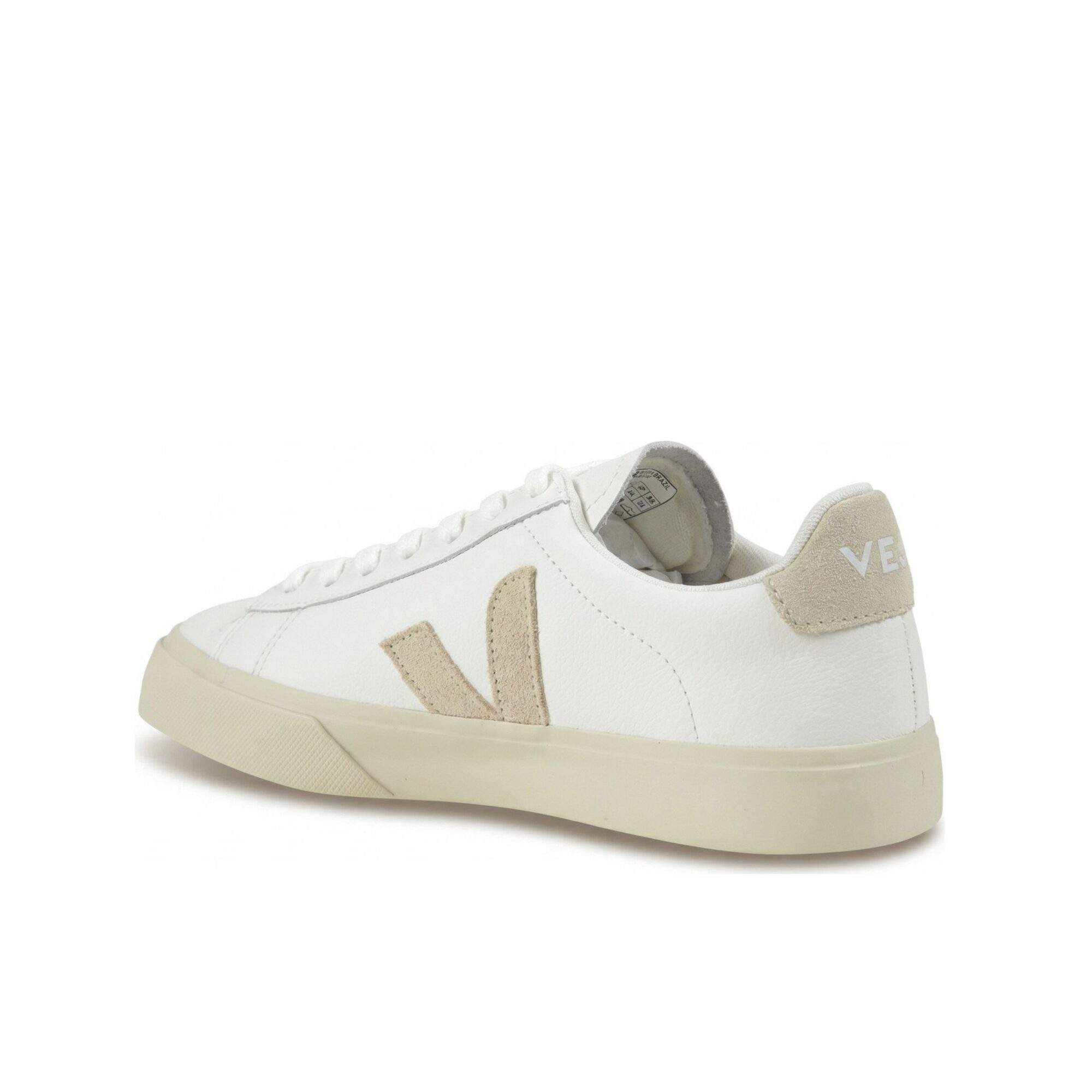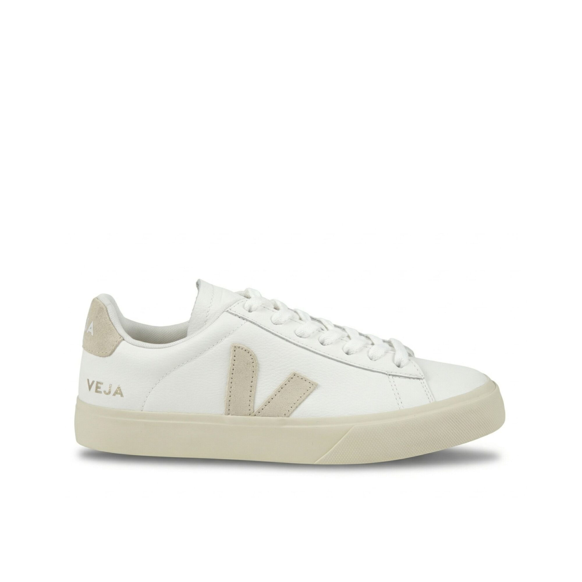 Sneakers Campo Veja. Tomaia in pelle Organic Traced (O. T.) ed inserti in pelle scamosciata, suola in miscela di gomma amazzonica e silice minerale.
