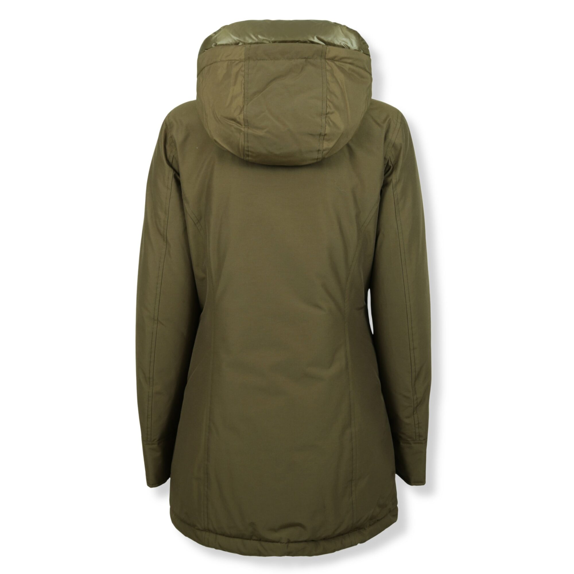 Arctic Parka Woolrich. Design in Ramar Cloth con rivestimento in Teflon. Due tasche oblique sul davanti, con chiusura a zip nascosta.