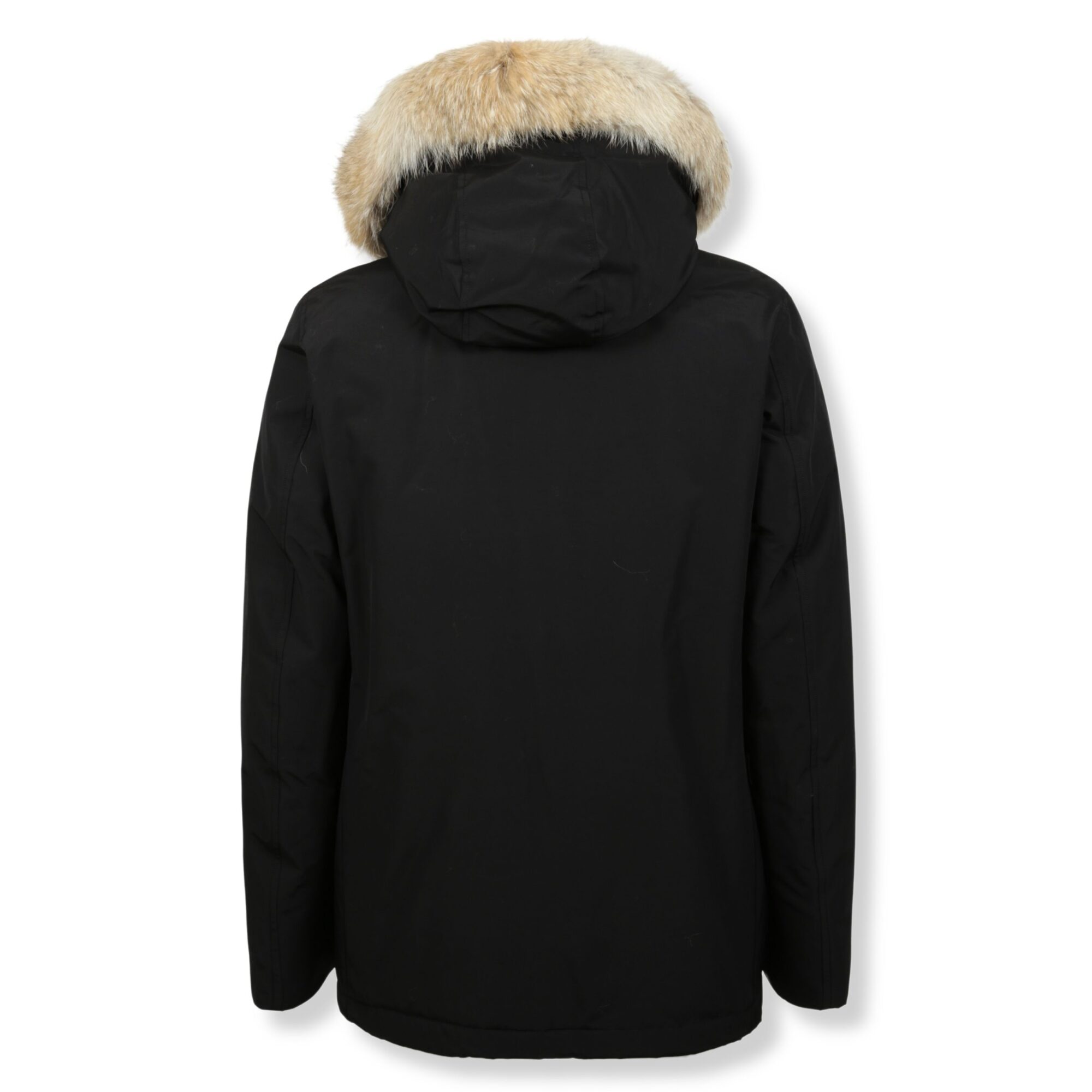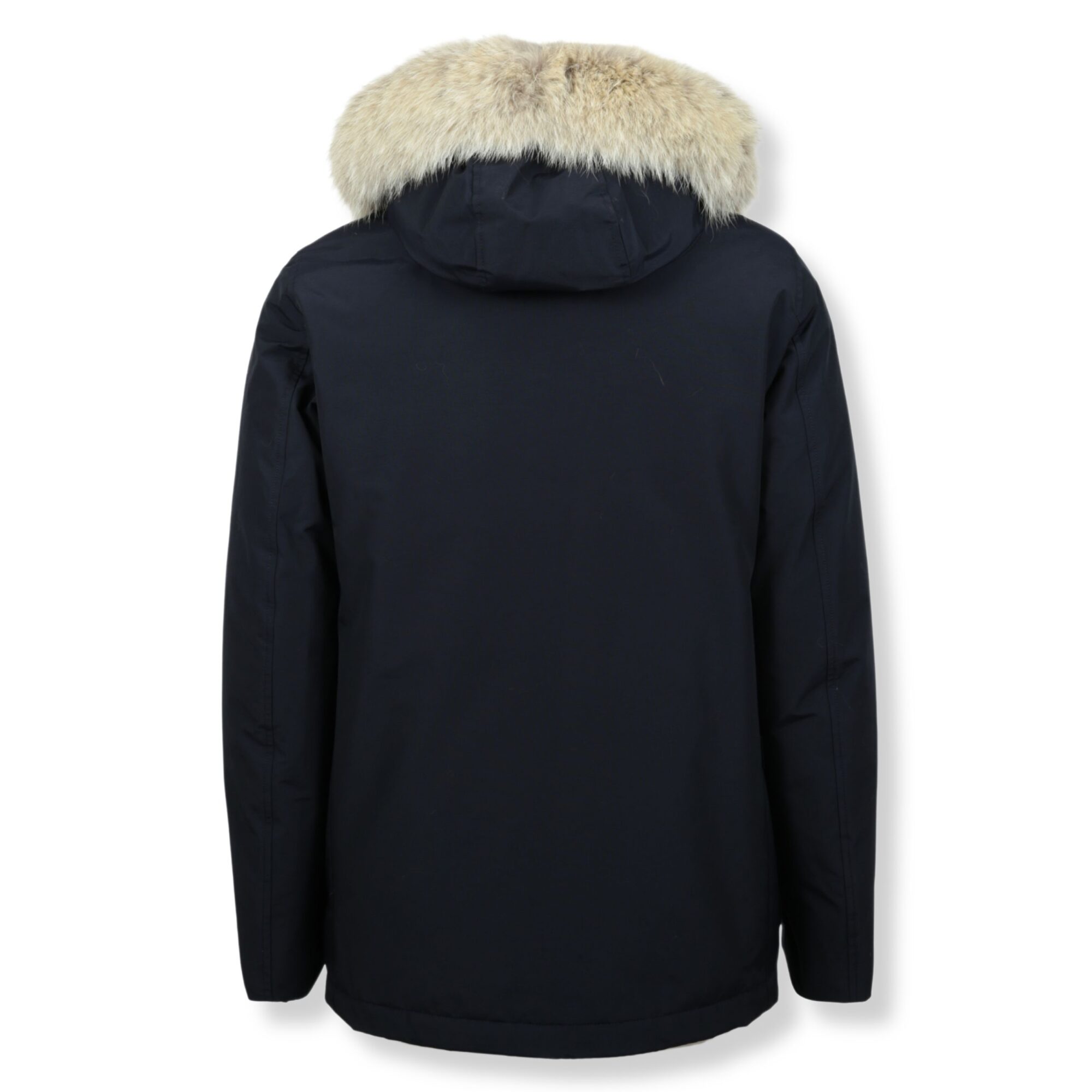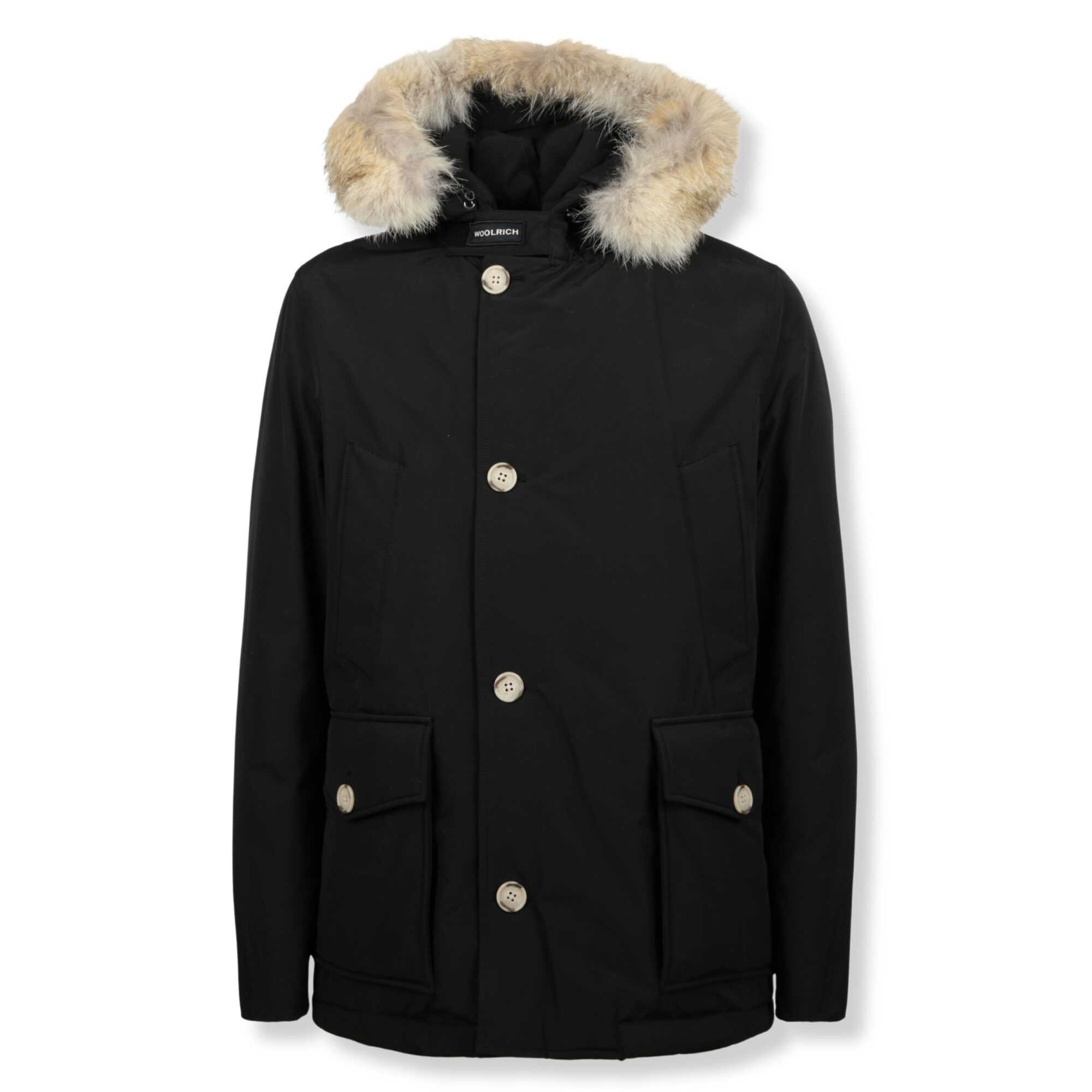 Arctic Parka Woolrich. In iconico tessuto Ramar Cloth con imbottitura in piuma d’anatra 80/20. Cappuccio con pelliccia rimovibile, due tasche con patta sul davanti e due tasche verticali sul petto.