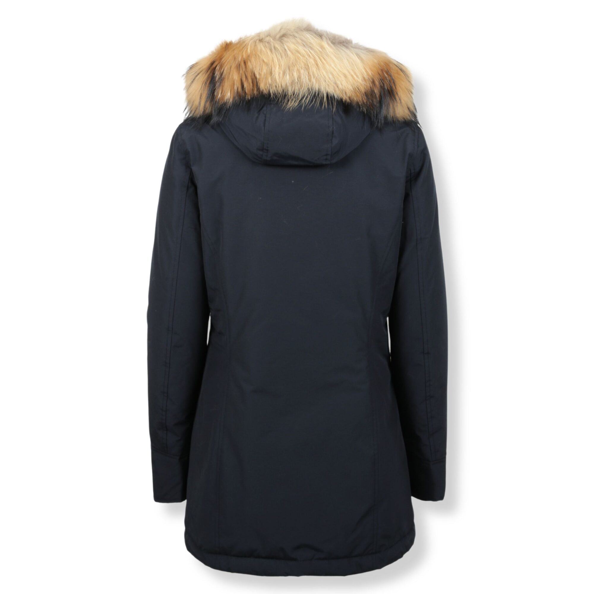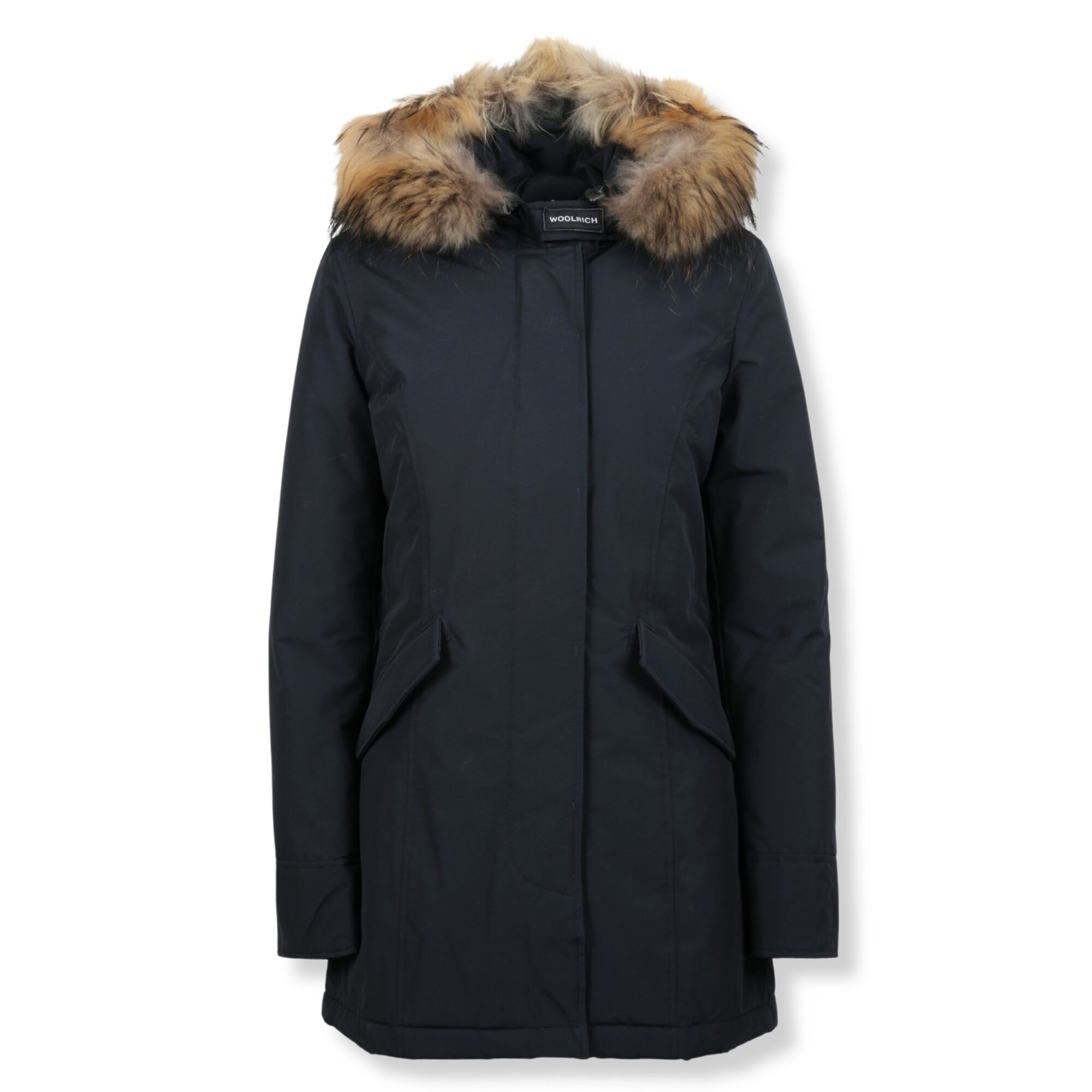 Arctic Parka Woolrich. In iconico Ramar Cloth con imbottitura in piuma d’anatra 70/30. Cappuccio con pelliccia rimovibile, chiusura frontale a zip e bottoni nascosti e due tasche oblique con patta sul davanti.