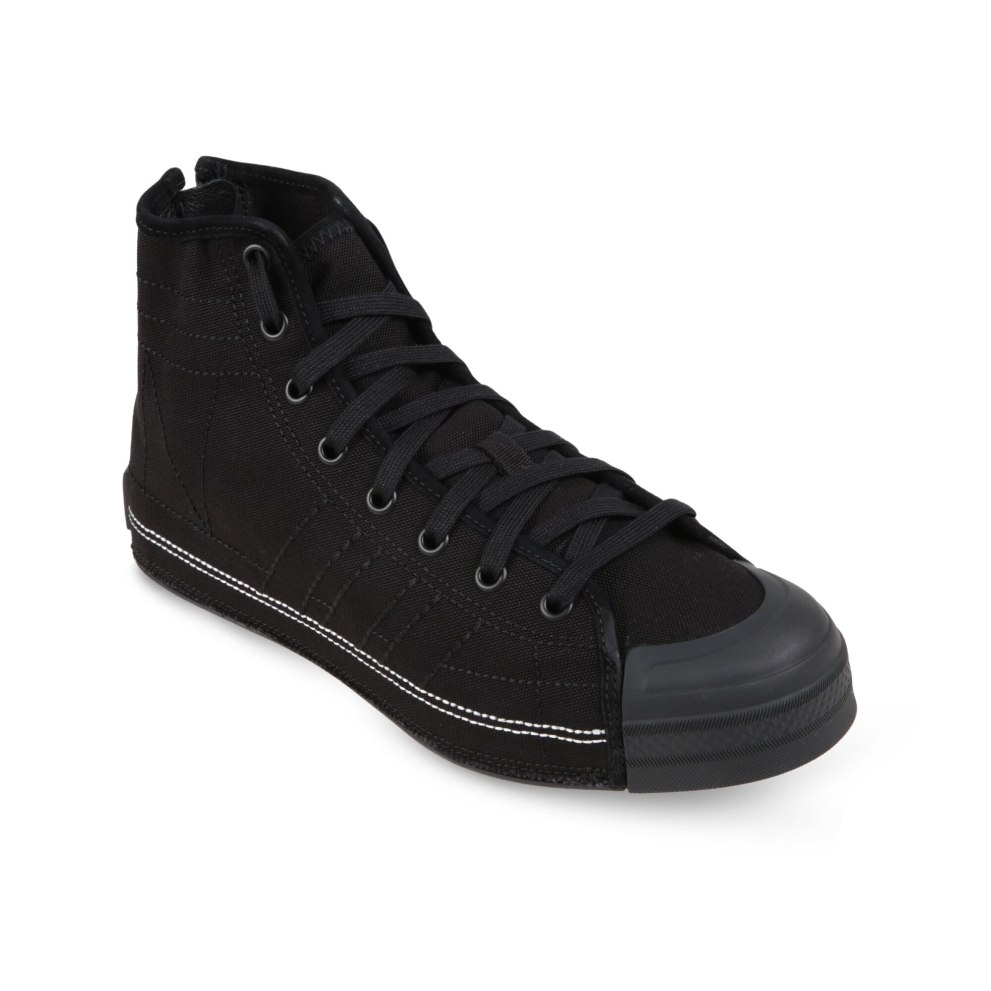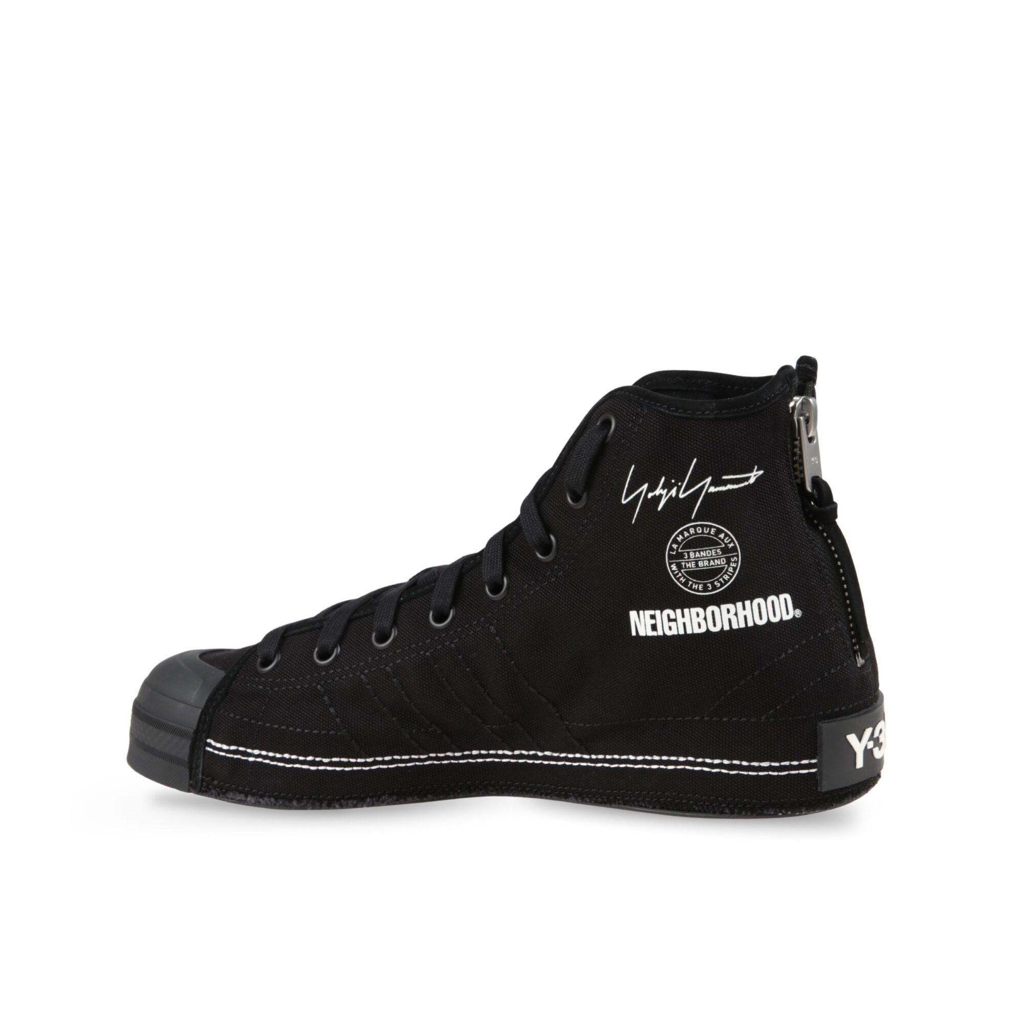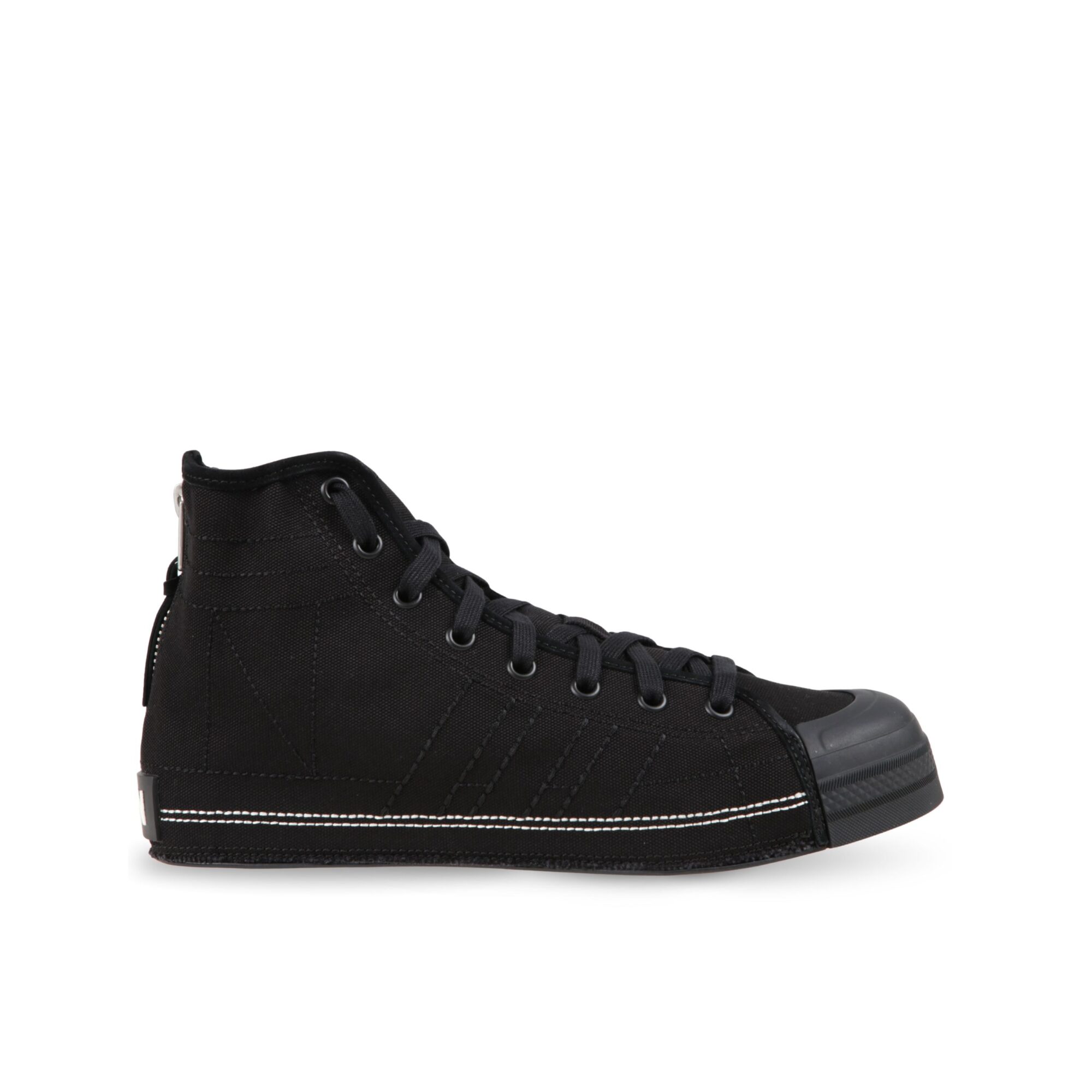 Nizza Hi Y-3. Design in tela che si estende fino alla suola, con impunture in contrasto. Intersuola Lightstrike rimovibile, chiusura con lacci frontali e zip sul tallone.