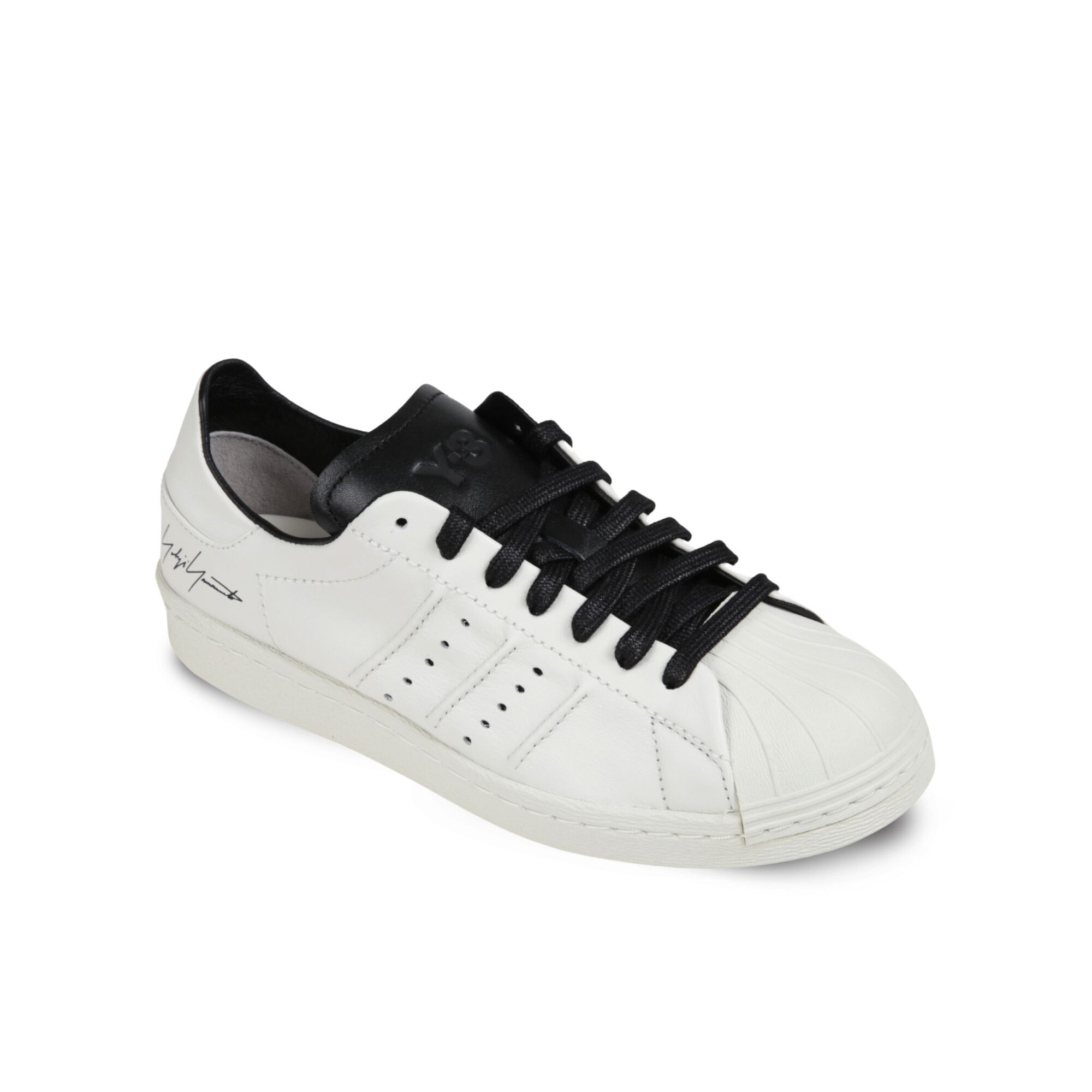 Superstar Y-3. Design in pelle, con microfori laterali. con realizzata in pelle. Lacci e linguetta in contrasto.