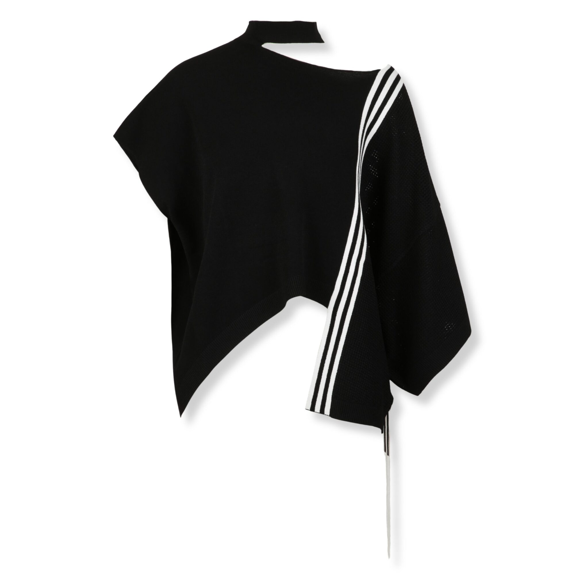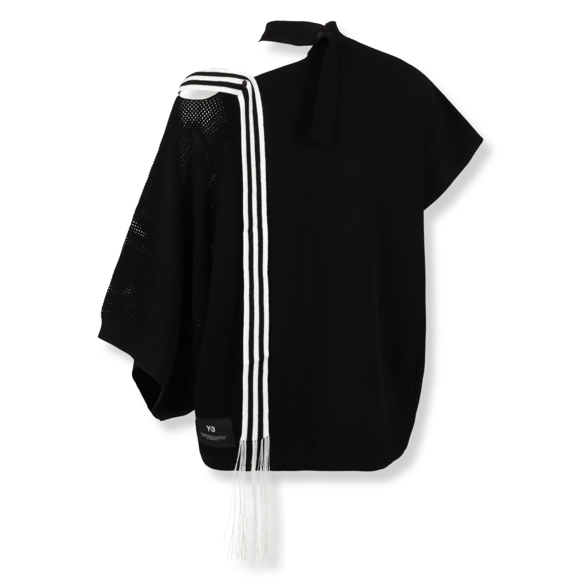 Knit Top Y-3. Silhouette rilassata e decostruita con trama lavorata a maglia fitta ed inserto in jersey singolo con iconico dettaglio 3-Stripes.