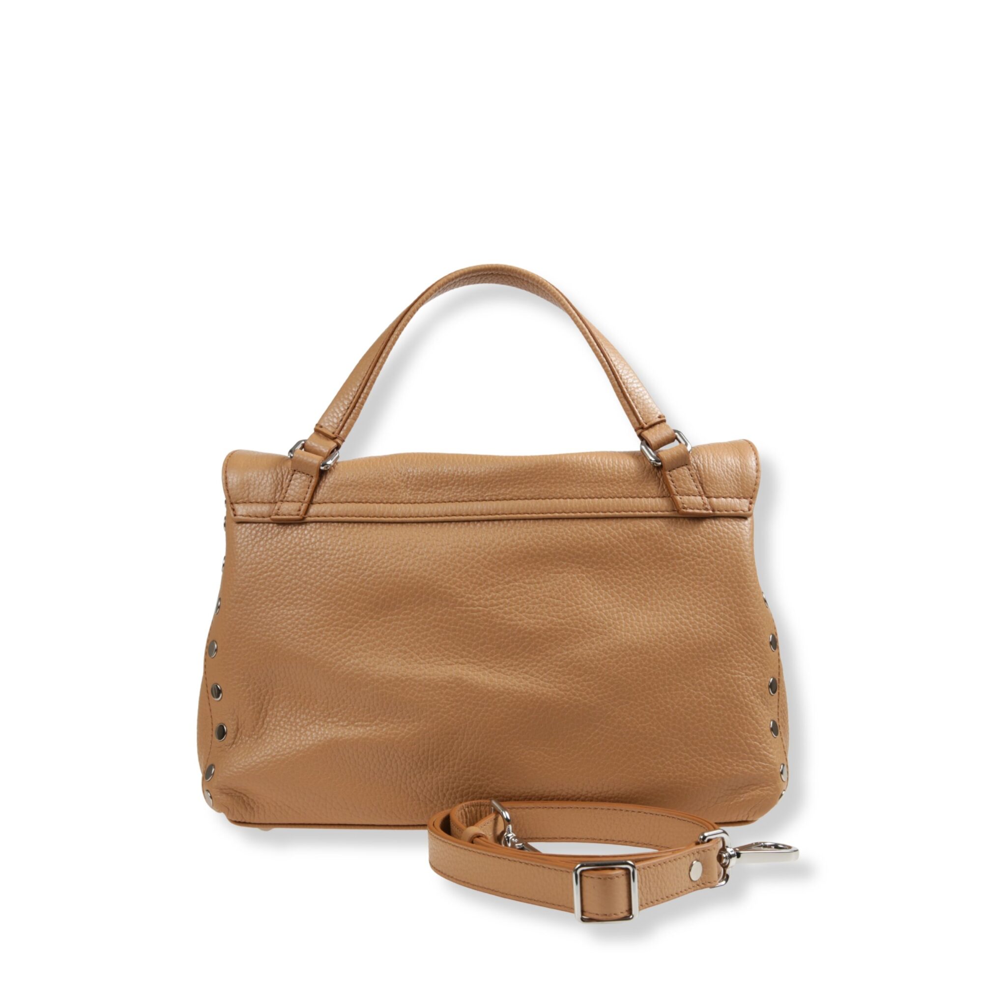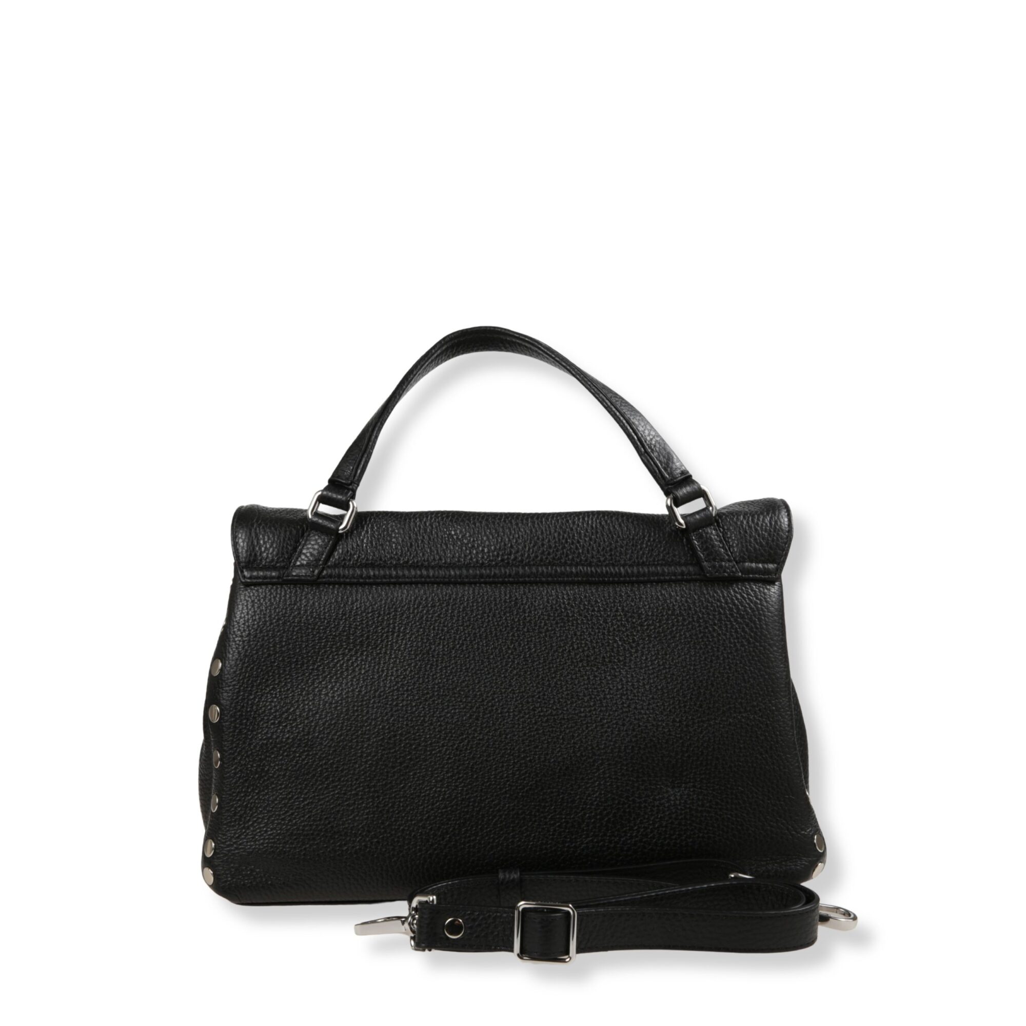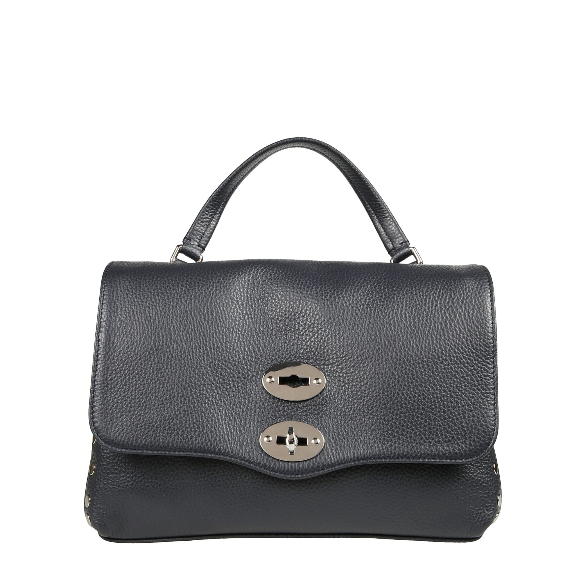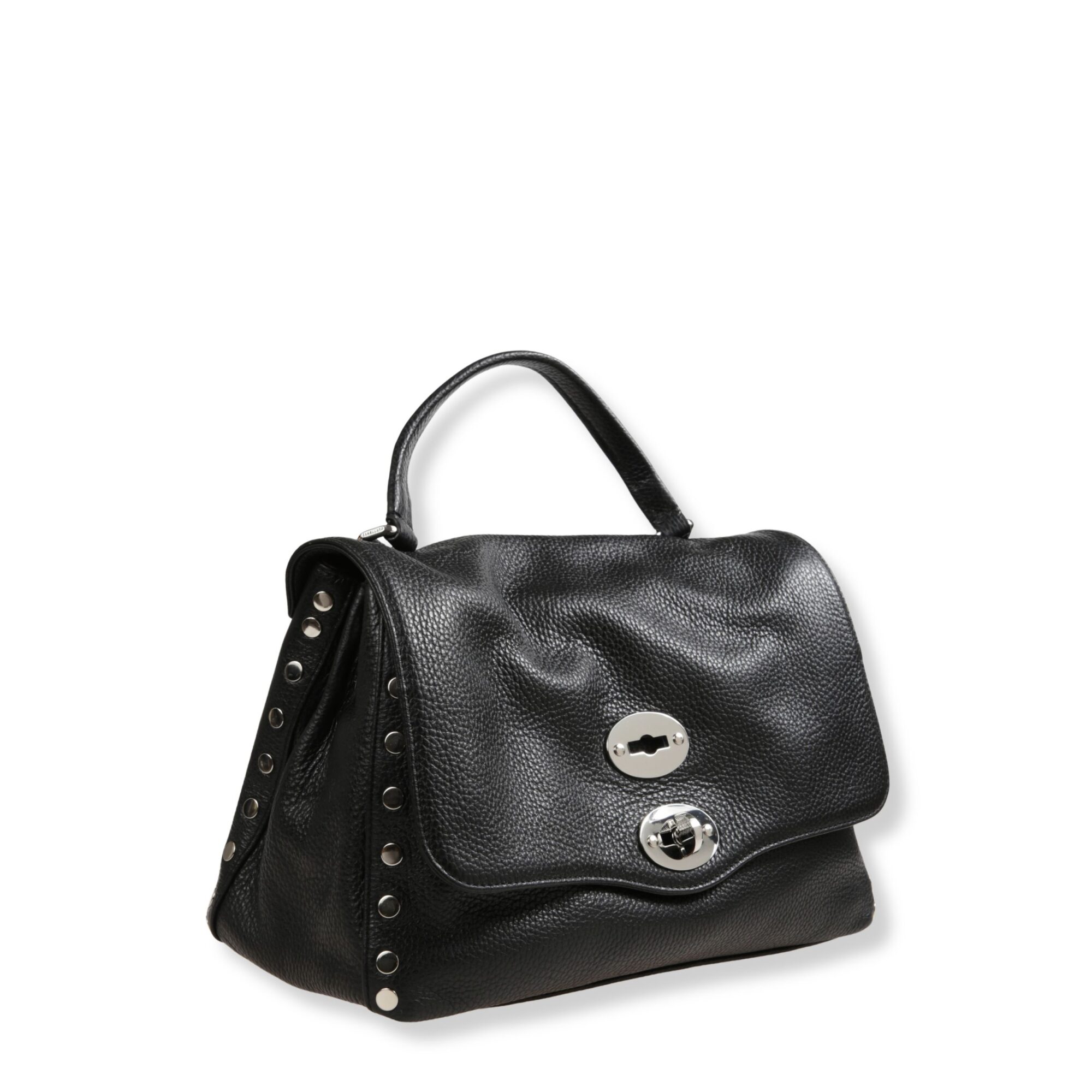 Postina Small Zanellato. Design iconico in pelle, decorata con rivetti sui bordi. Chiusura con patta frontale e fibbia twist-lock. Dotata di manico superiore e tracolla in pelle regolabile.