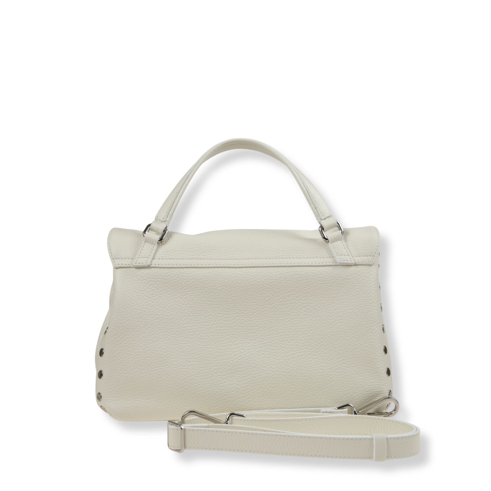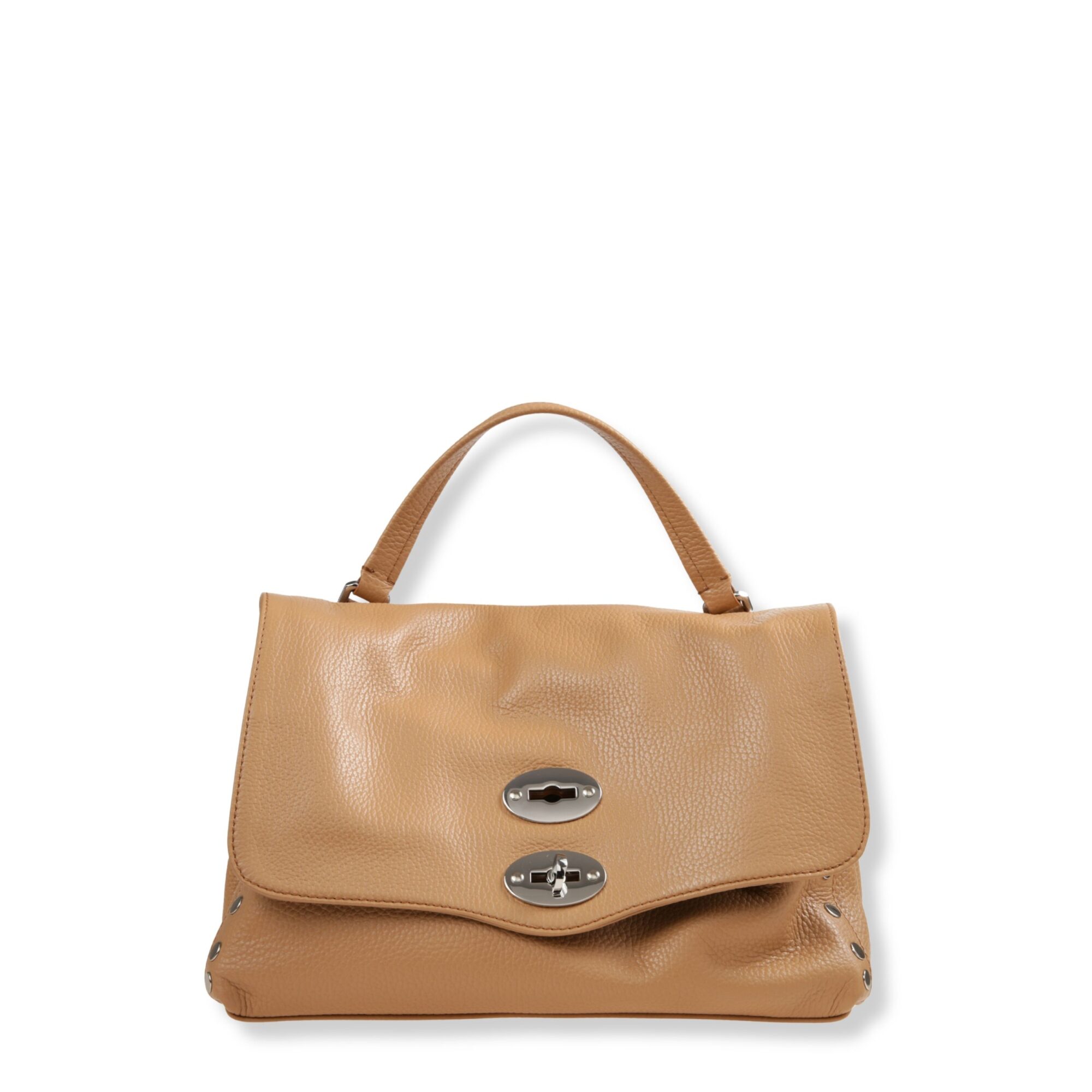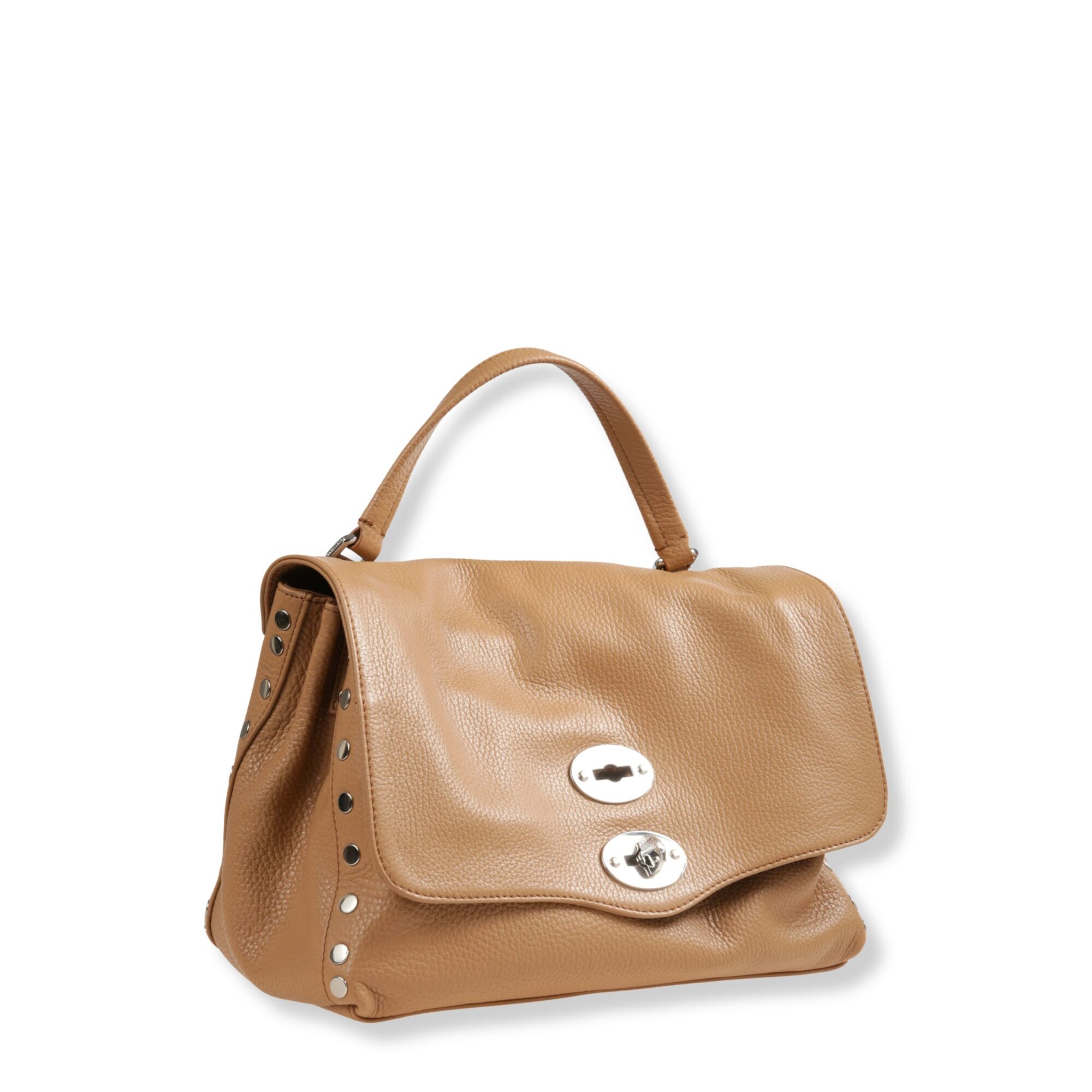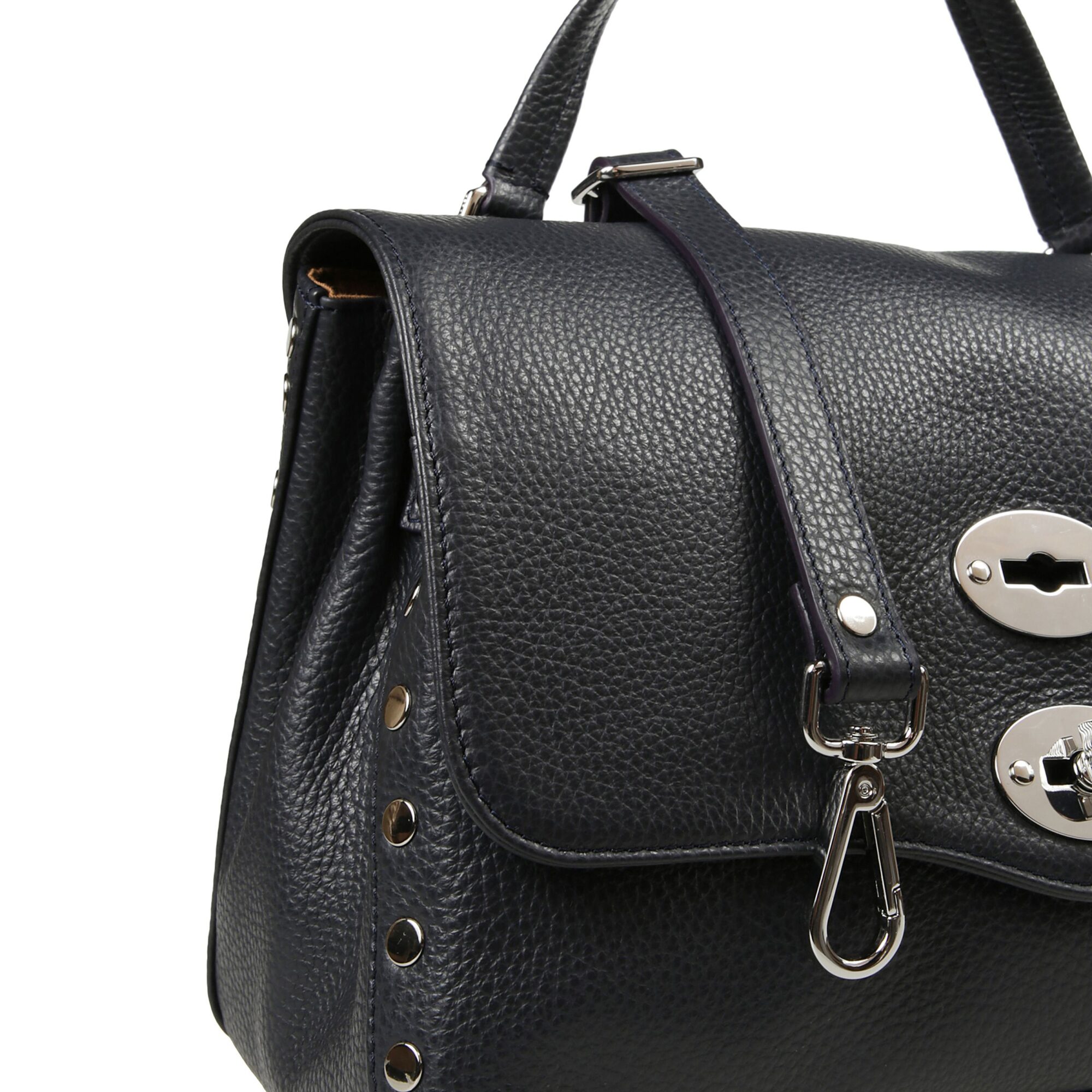 Postina Small Zanellato. Design iconico in pelle, decorata con rivetti sui bordi. Chiusura con patta frontale e fibbia twist-lock. Dotata di manico superiore e tracolla in pelle regolabile.