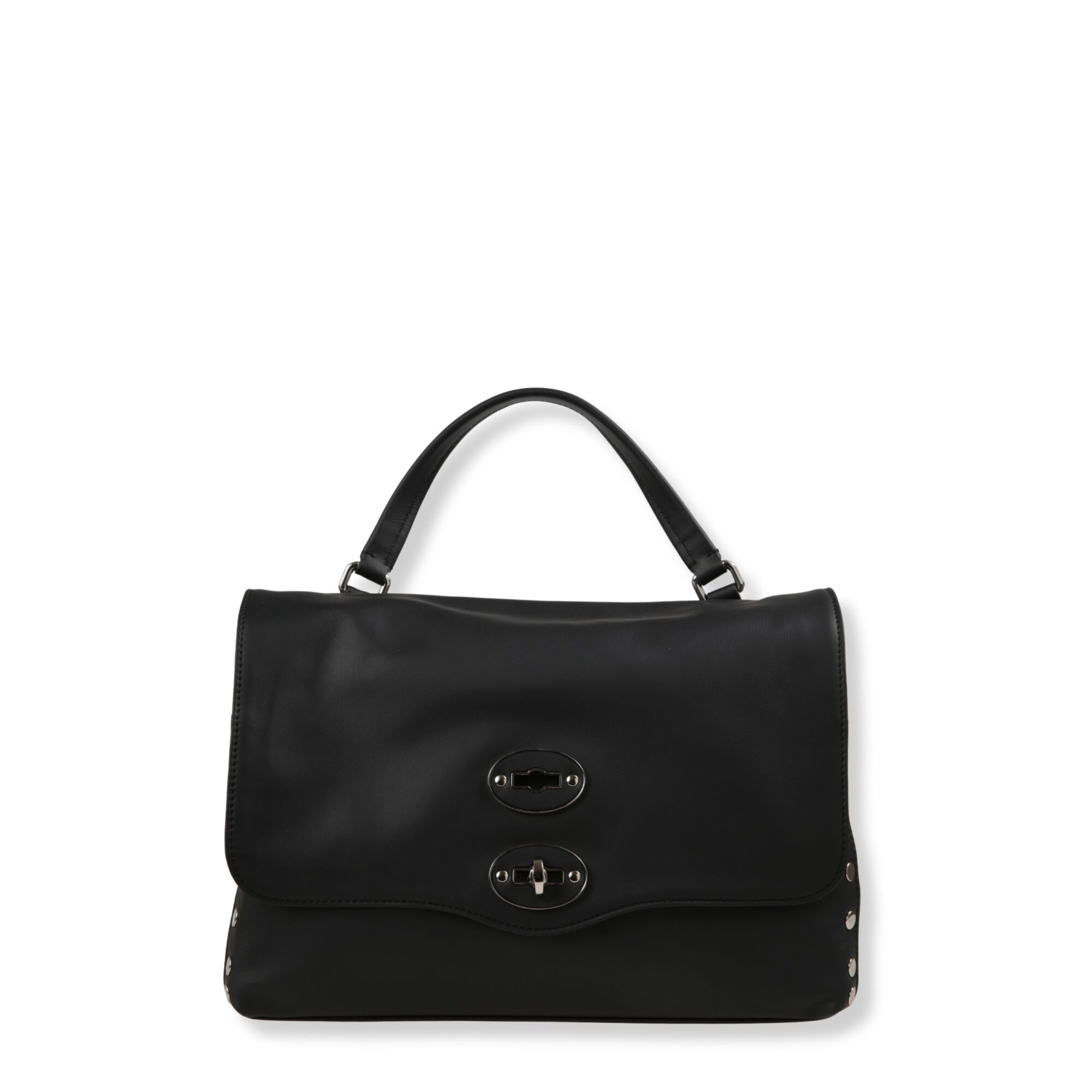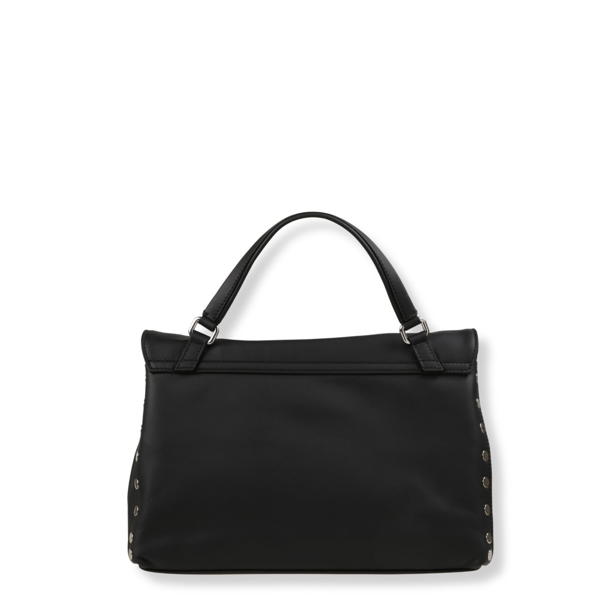 Postina Saeta Small Zanellato. Design iconico in pelle con rivetti sui bordi, chiusura con patta frontale e fibbia twist-lock. Dotata di manico superiore e tracolla regolabile.