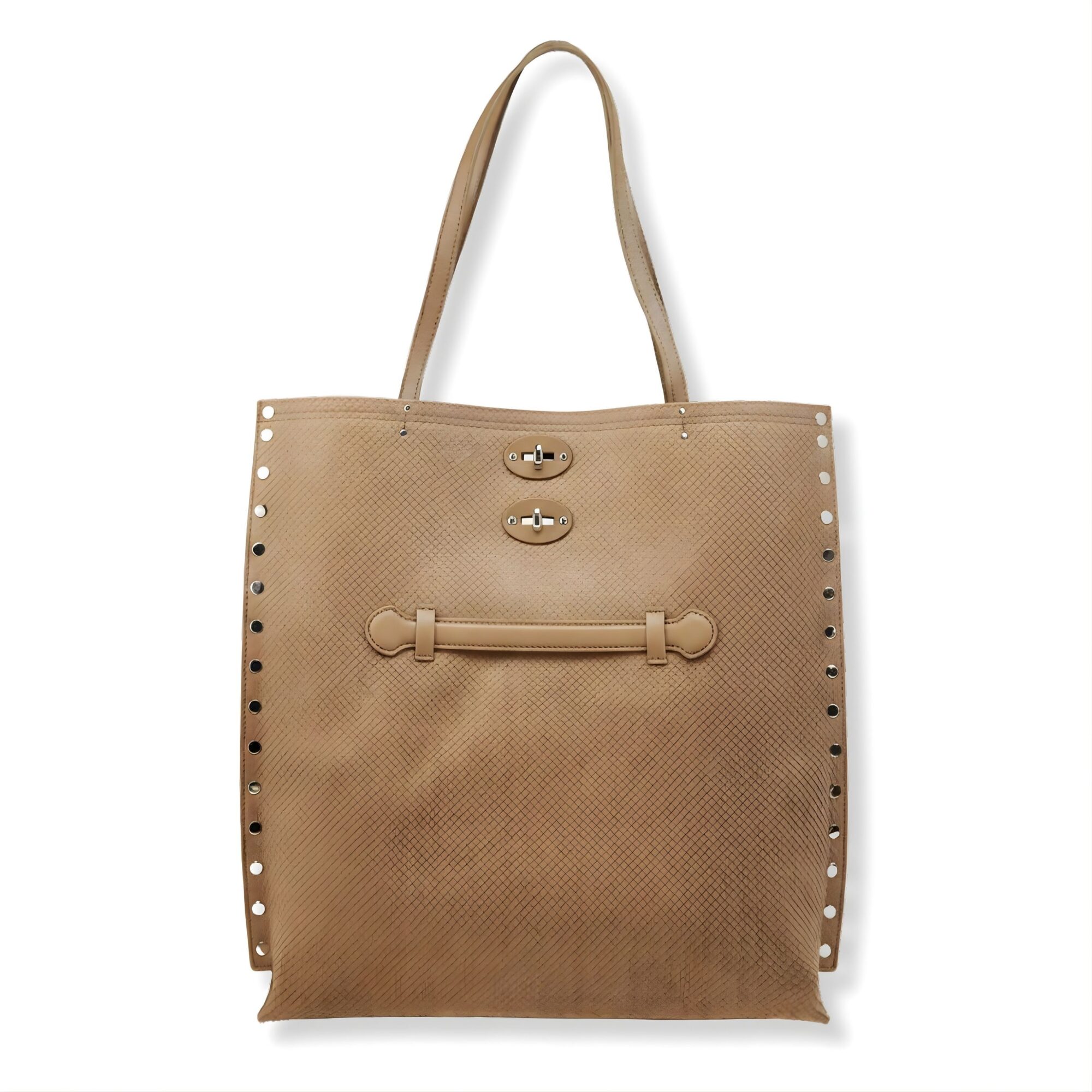 A’ Spasso Amoretto Medium Zanellato. Modello tote bag con fibbia twist-lock, doppio manico superiore e impugnatura a mano frontale.