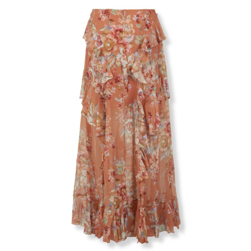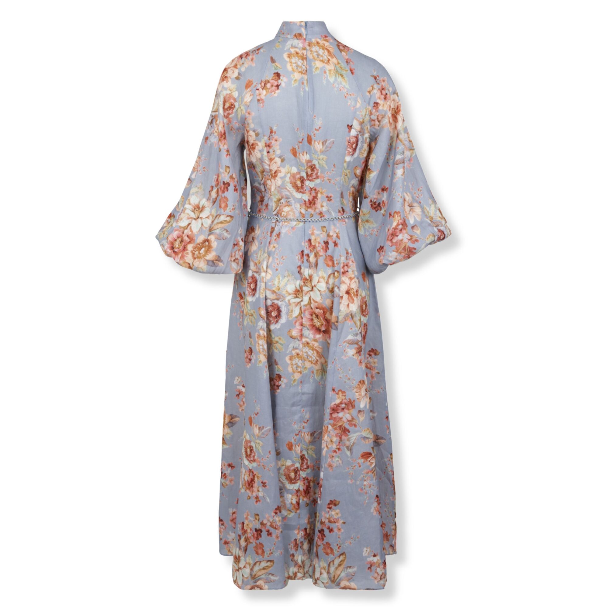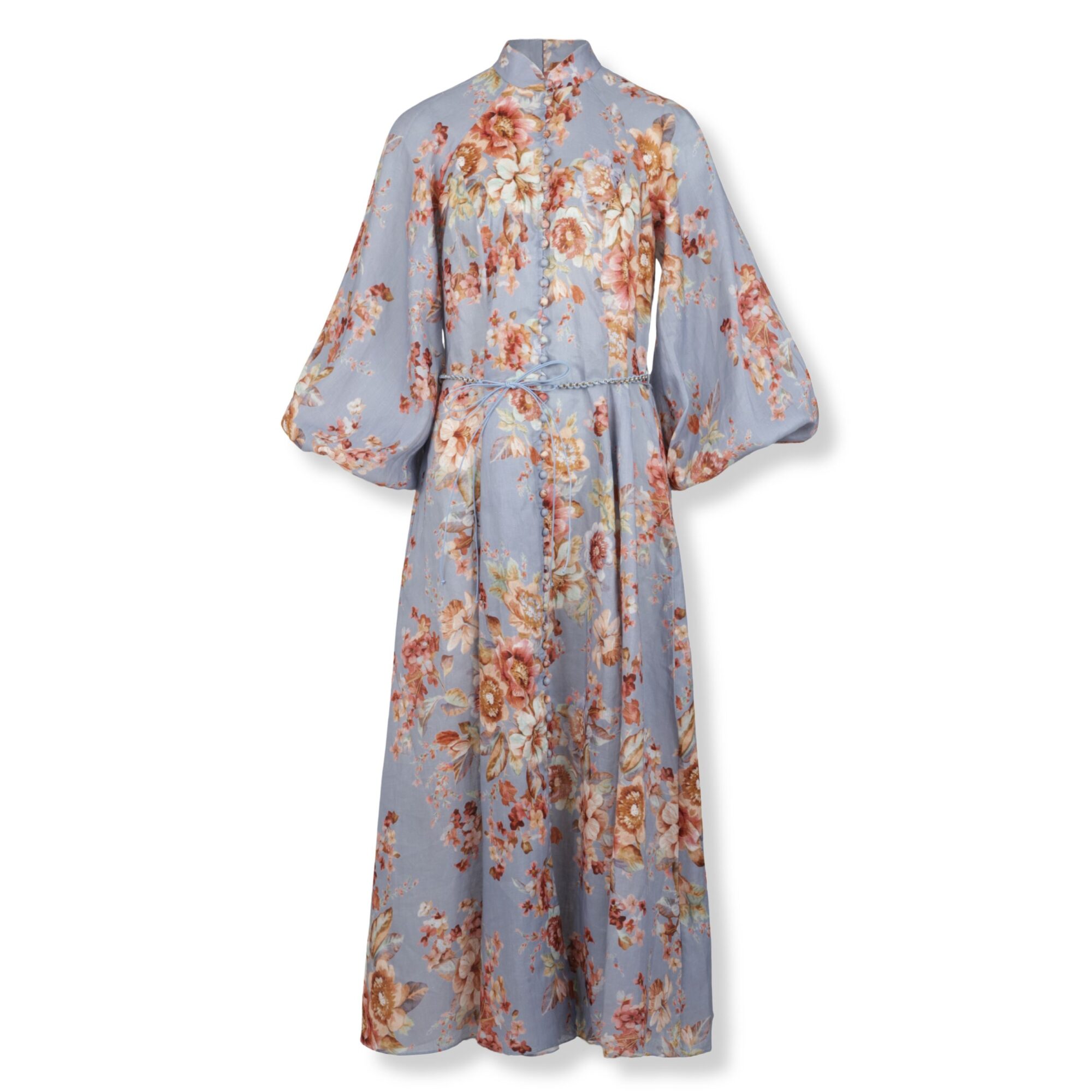 Abito Awaken Zimmermann. Stampa con motivo floreale all-over e abbottonatura frontale. Maniche a palloncino e cintura coordinata in vita.