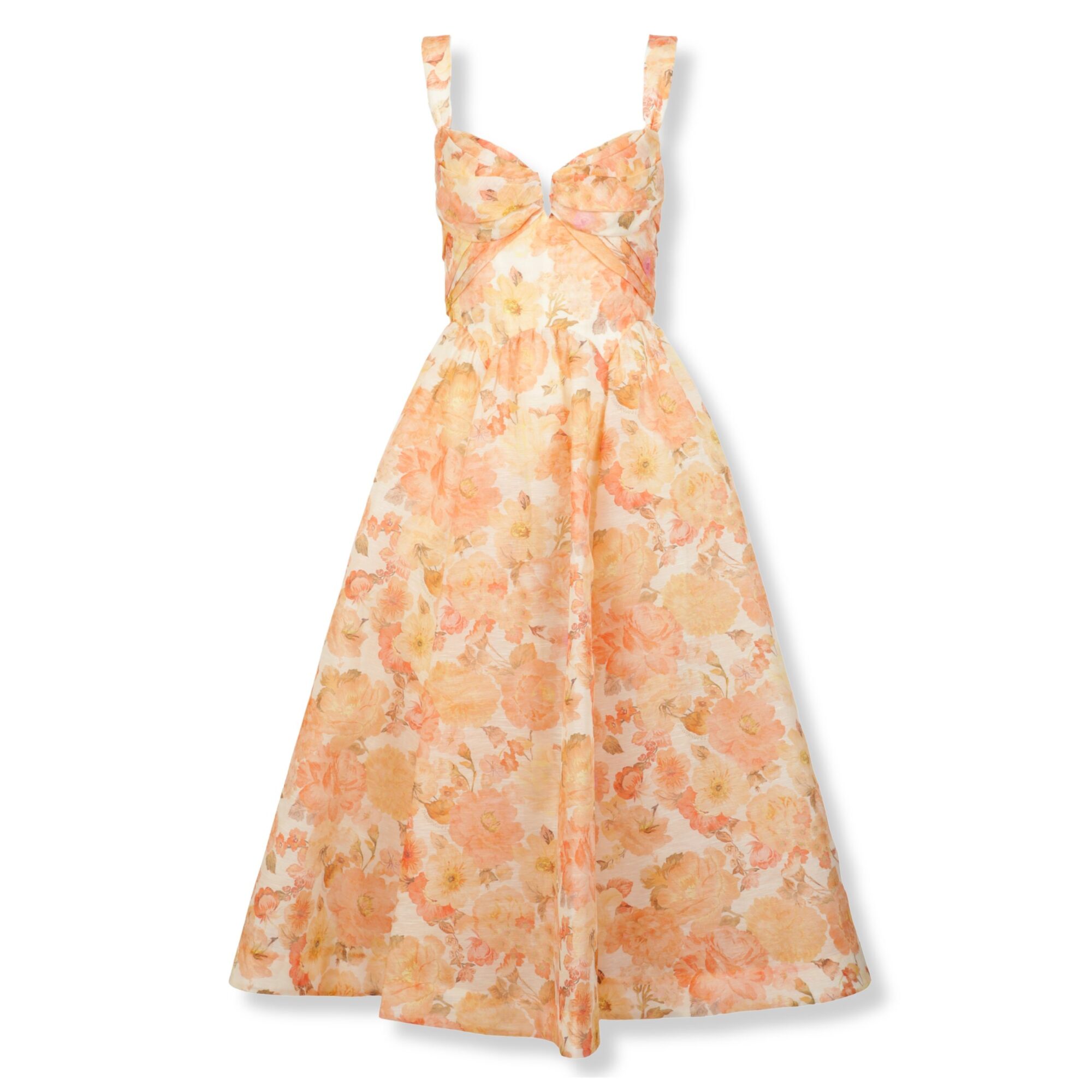 Rebellion Drape Midi Dress Zimmermann. Corpetto con scollo a cuore e drappeggio, gonna con linea svasata.