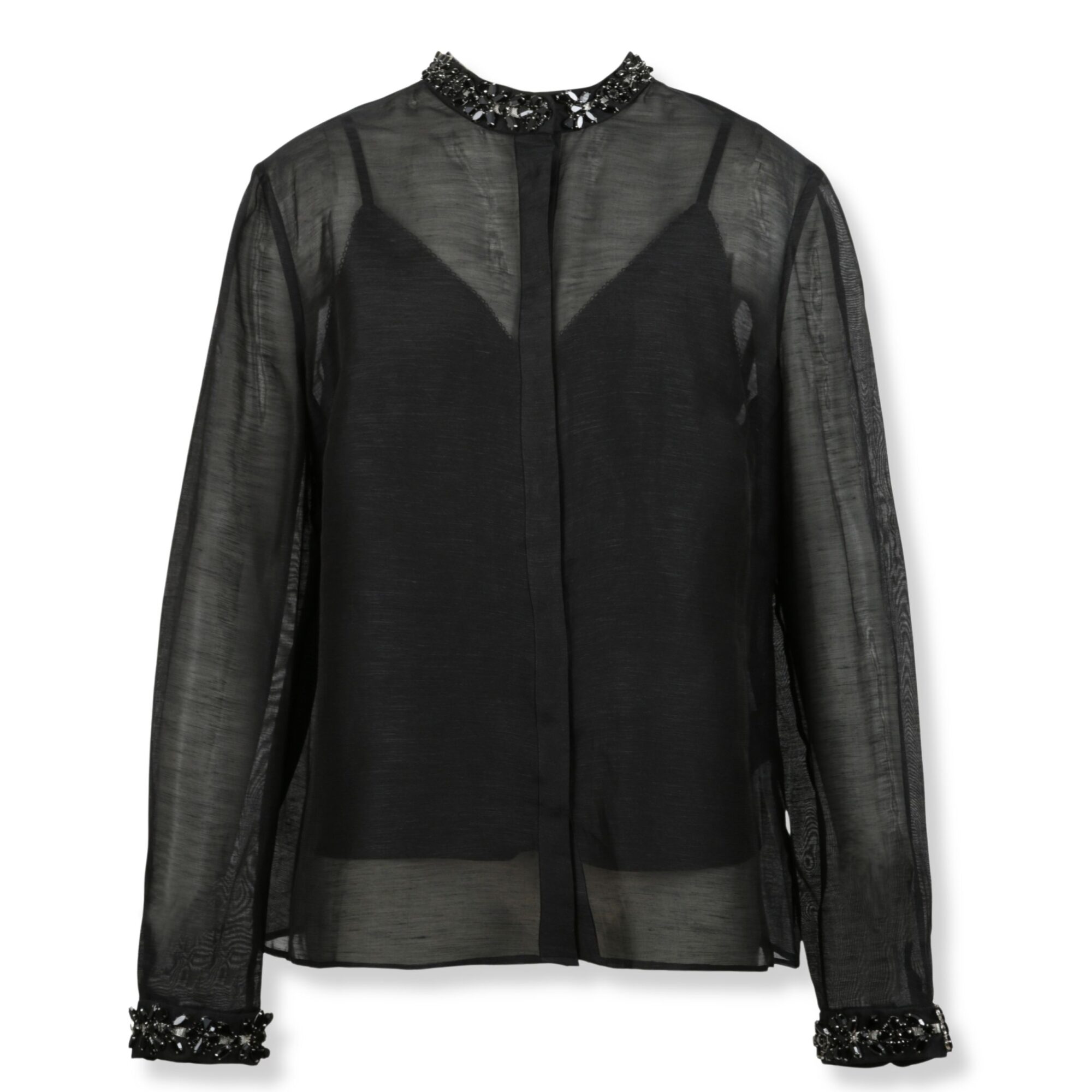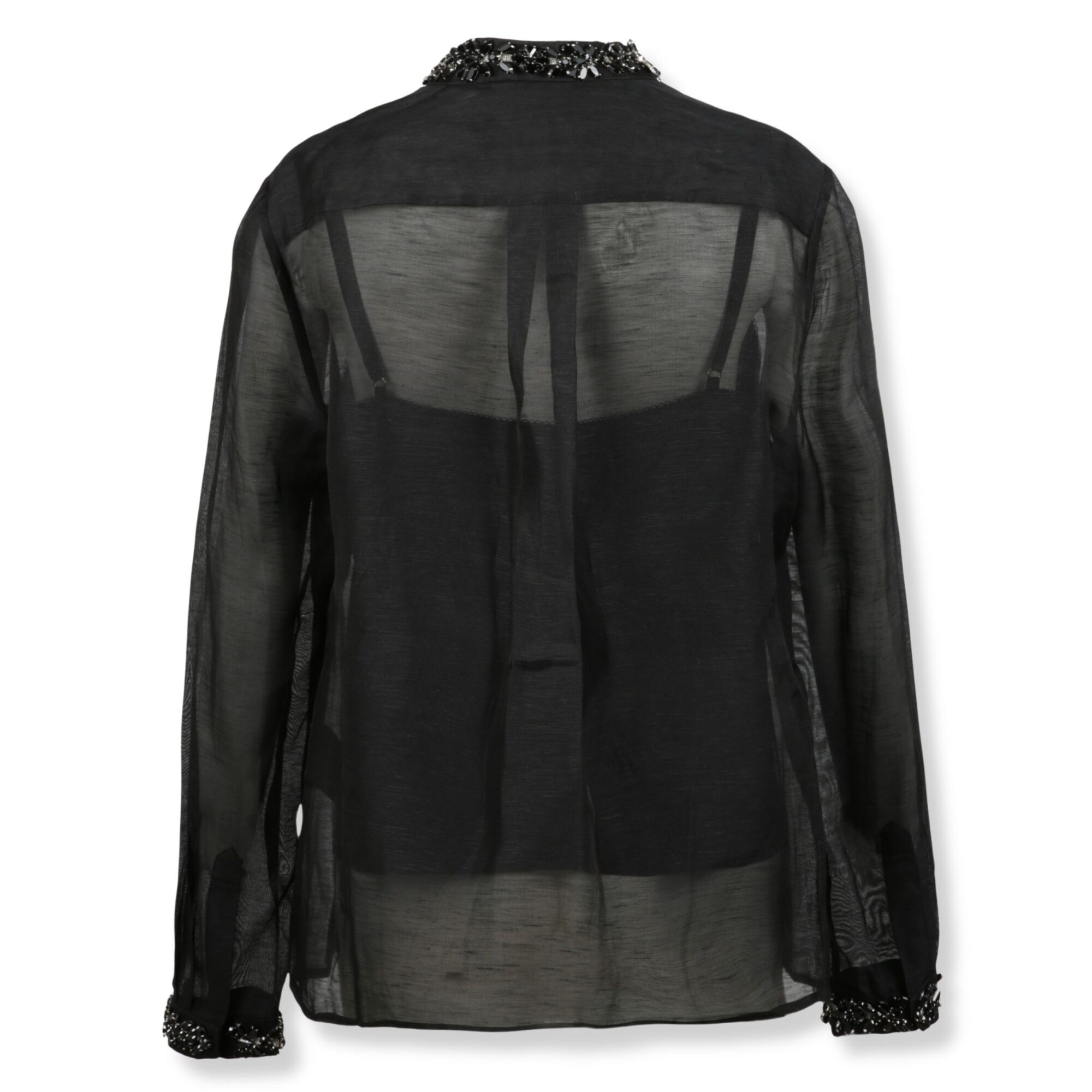 Hypnotic Jewelled Body Shirt Zimmermann. Corpo in seta semitrasparente, collo e polsini decorati con perline e cristalli. Chiusura con abbottonatura nascosta.