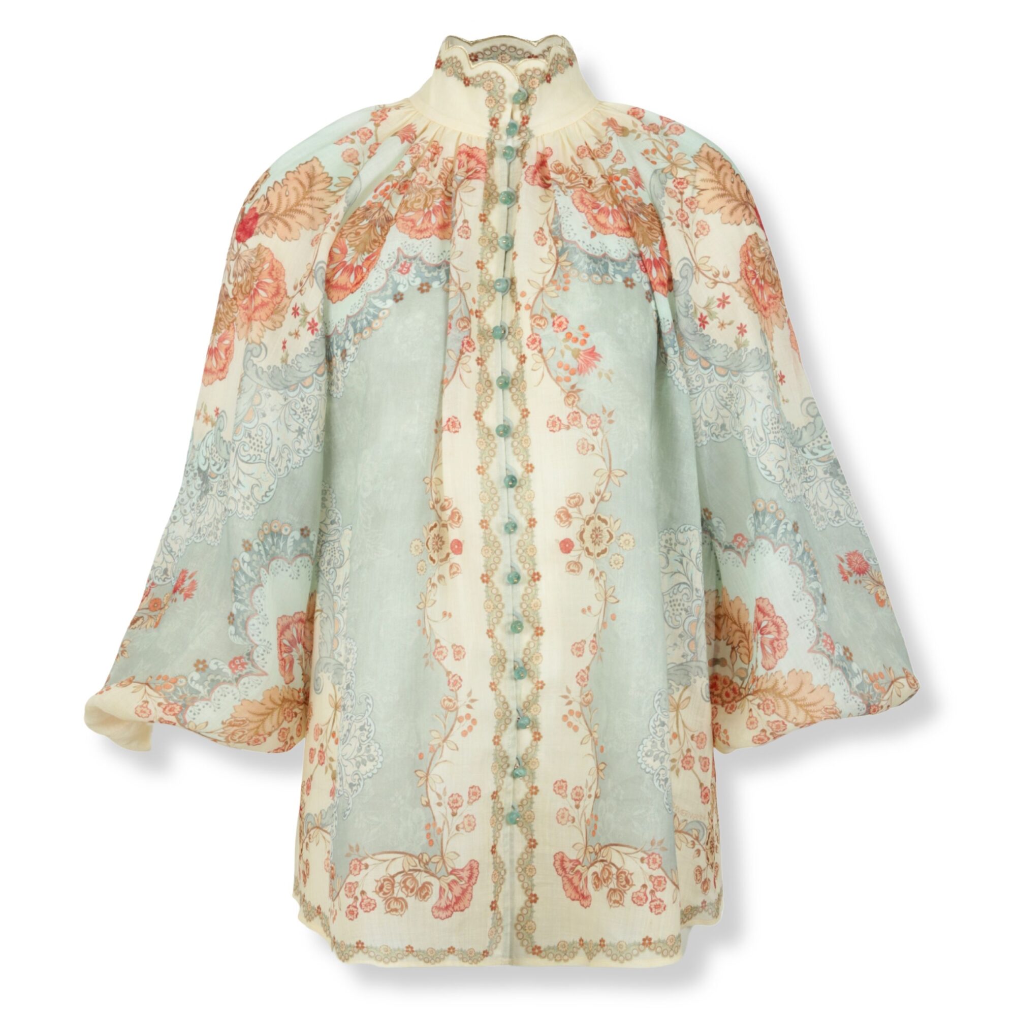 Blusa Daylight Zimmermann. Stampa in fantasia su tutto il corpo, colletto rialzato rifinito con bordo smerlato, abbottonatura frontale e maniche a sbuffo.