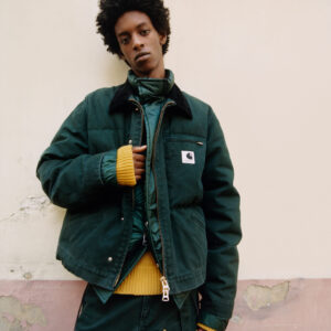 La Detroit Puffer Jacket Ibrida: Un pezzo statement che fonde l’iconica silhouette della Detroit Jacket di Carhartt WIP con la tecnica sartoriale di un piumino sacai, completo di imbottitura isolante e impunture down-stitching sul canvas esterno.